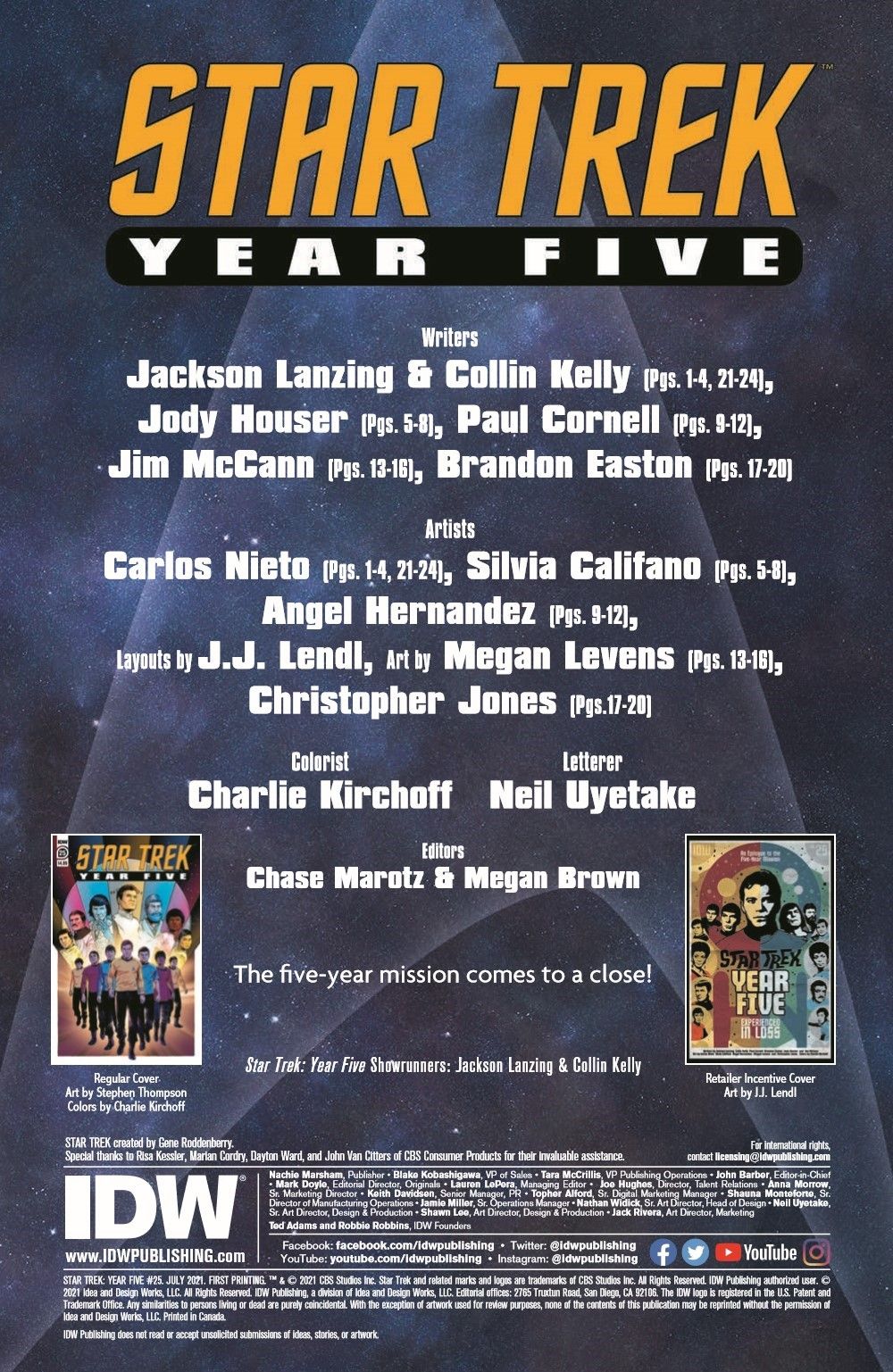 The five-year mission may be over, but now it's time for the next adventure to begin. Join the crew of the Enterprise for the end of an old chapter and the beginning of a new. This special, oversized epilogue from the entire Year Five writing team bridges the gap between the end of the five-year mission and the beginning of Star Trek: The Motion Picture.