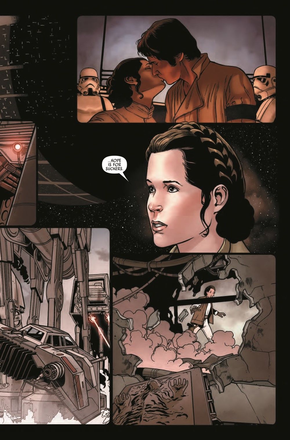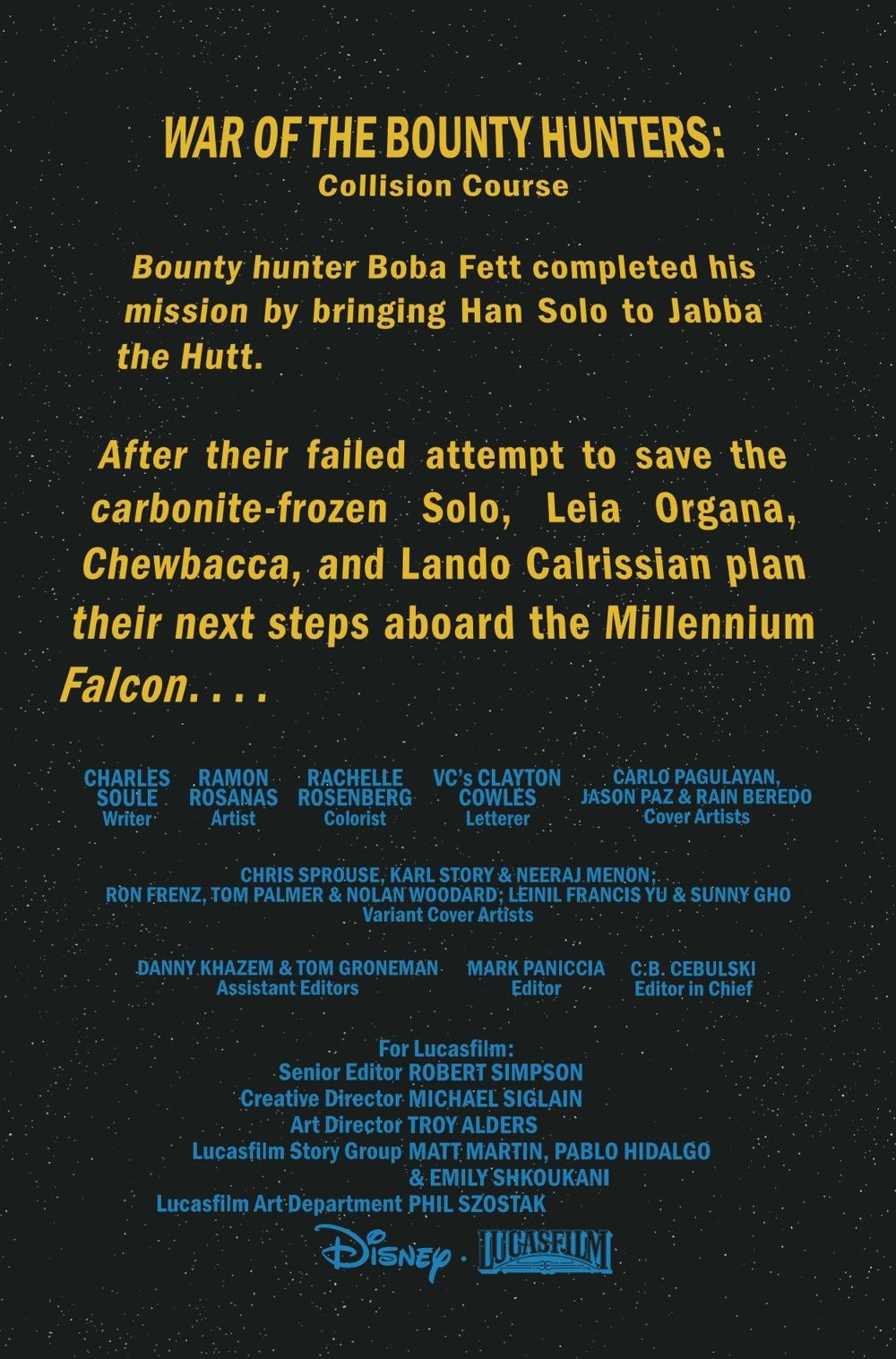 "COLLISION COURSE" Reeling from the events on JEKARA and forced to confront the reality of her own choices and losses, LEIA ORGANA meets QI'RA to discuss the person they both have in common - heroic smuggler HAN SOLO! How has he influenced their lives to that point? And how will it change their fate moving forward?
