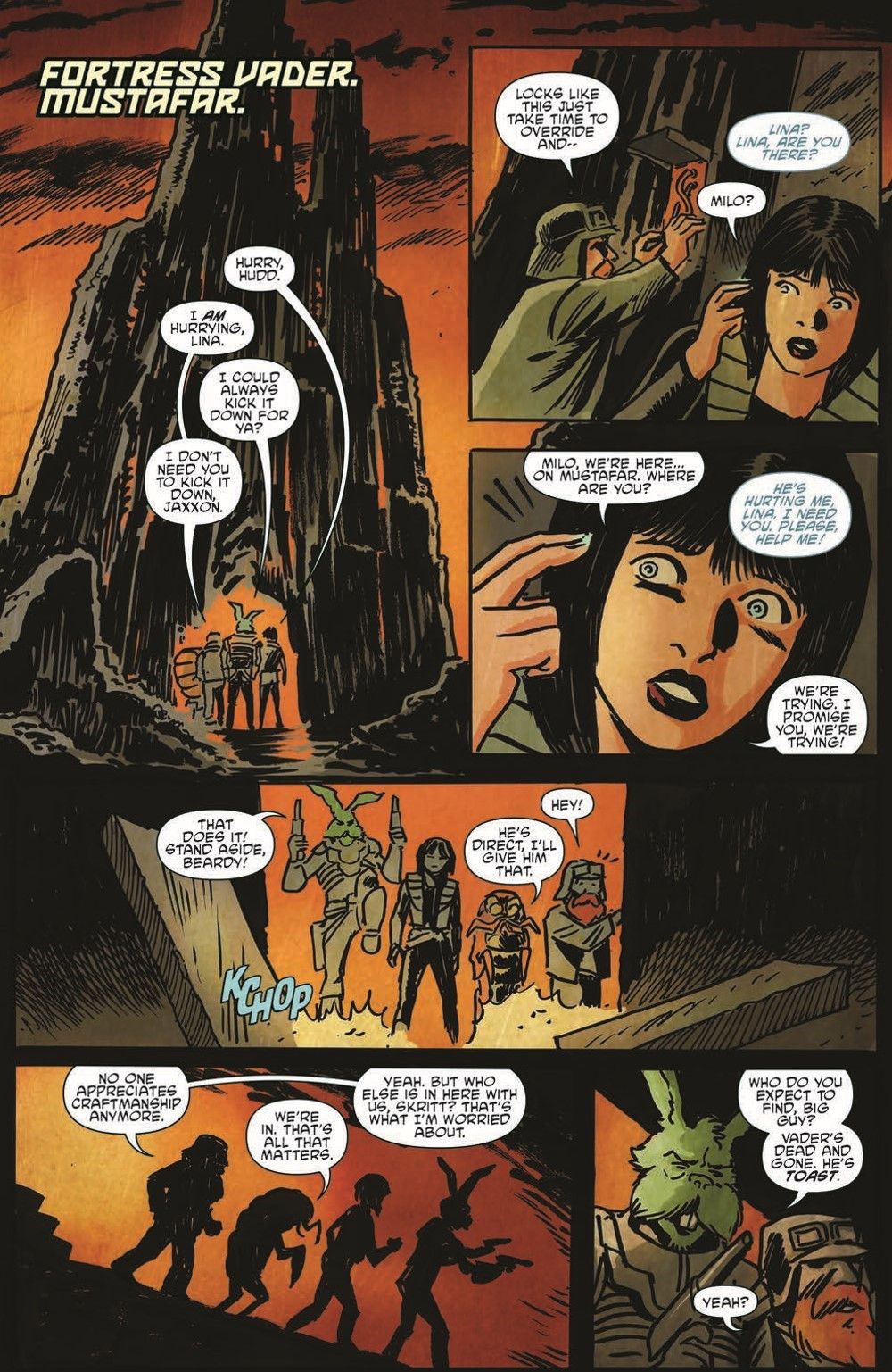 In the final Vader's Castle tale, Lina, Hudd, Skritt, and Jaxxon race to Mustafar to save Milo and Crater. Will the group be able to fight the ghosts that still haunt the castle, or will the galaxy forever be bound to suffer from the wrath of the GHOSTS OF VADER'S CASTLE?