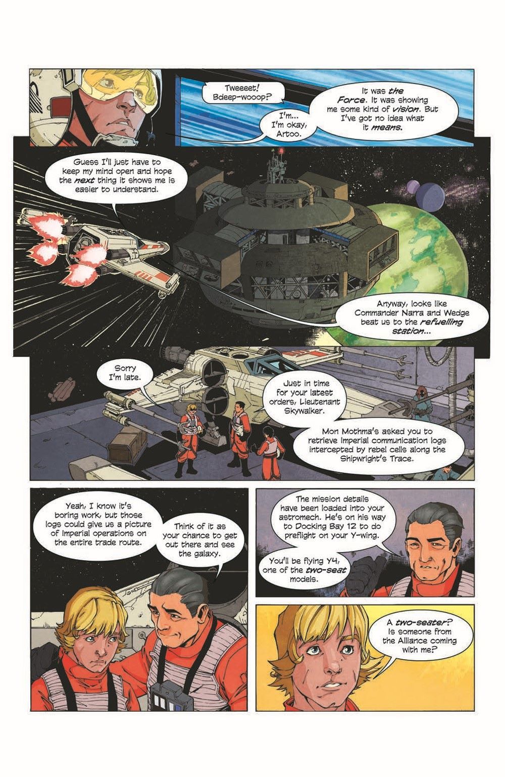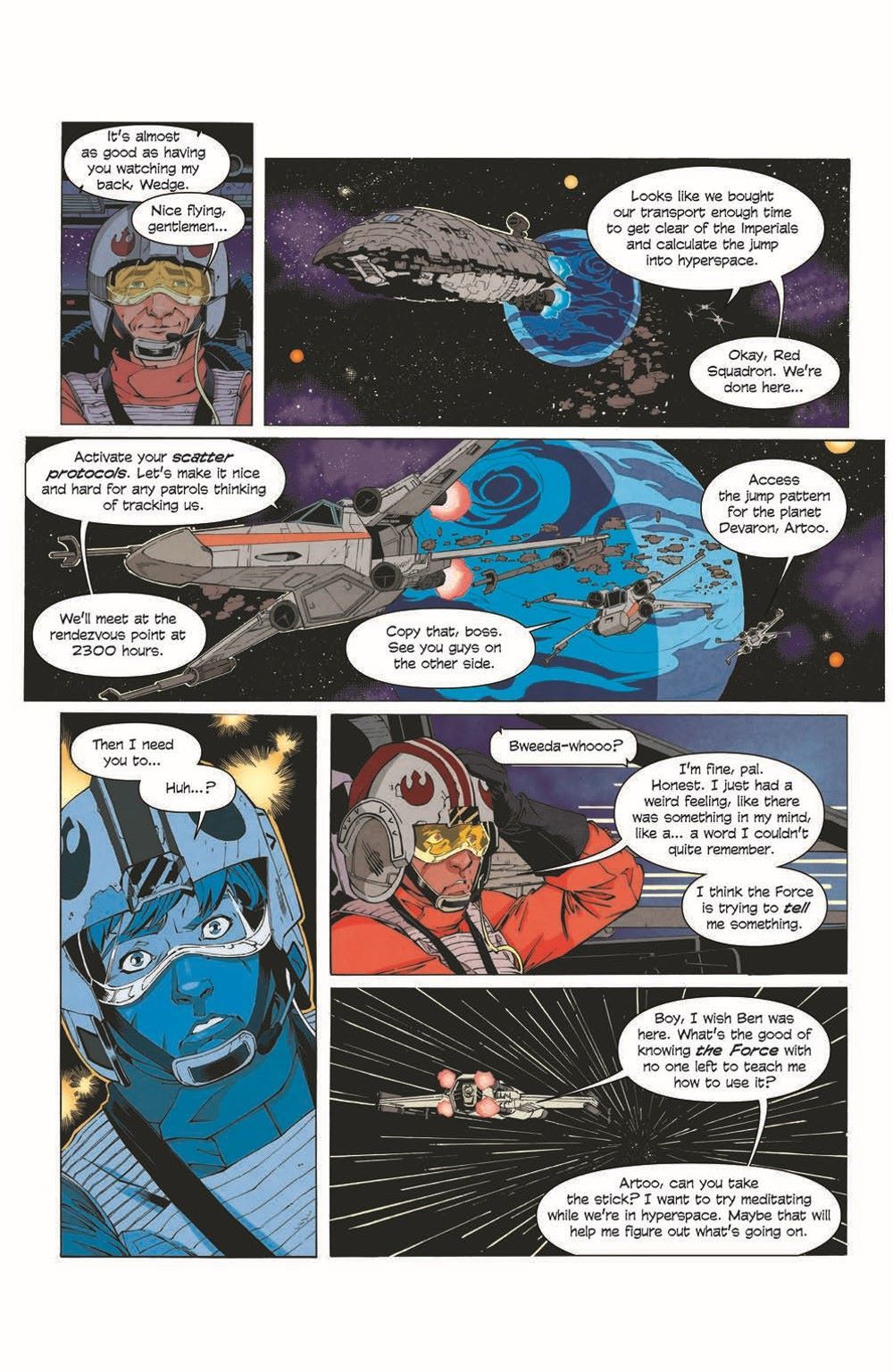 The critically praised novel by New York Times bestselling writer Jason Fry is adapted to comics in this all-new adventure. The Rebel Alliance has destroyed the Empire's dreaded Death Star, but the Imperial starfleet continues hunting the rebels throughout the galaxy. Luke Skywalker now seeks to support the Rebellion as an X-wing fighter. But as he flies with the pilots of the Red Squadron, Luke feels stirrings of the Force. And this farm boy turned fighter pilot begins to suspect that his destiny lies along a different path.