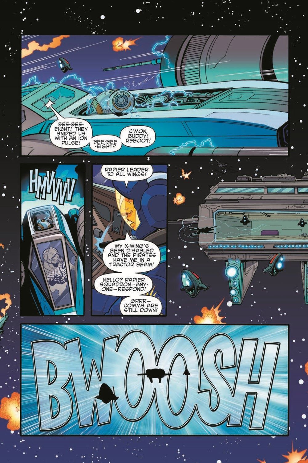 First, with hotshot Resistance pilot Poe Dameron captured by pirates, it’s up to BB-8—and Rapier Squadron—to save the day! Then, in a story set before A New Hope, Princess Leia Organa faces the most challenging task of her young life: teaching Amilyn Holdo how to drive a speeder! But both learn an important lesson after finding themselves in the dangerous lower levels of Coruscant. And finally, witness one of the many lessons Rey learned from Luke Skywalker during her time on Ahch-To. Collects issues #24–26 of the Star Wars Adventures series.