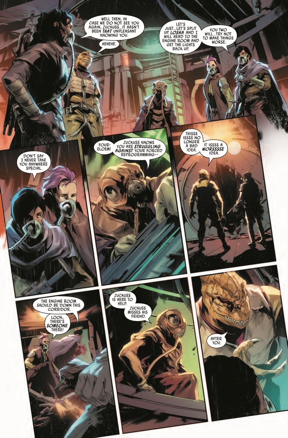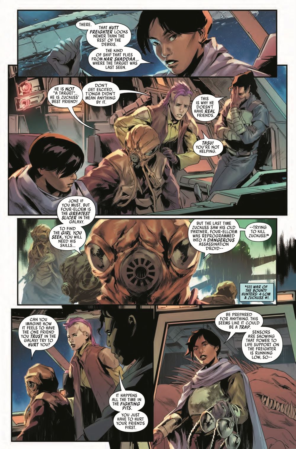 FORLORN FOR 4-LOM! T'ONGA and her bounty hunters are desperate to recover 4-LOM for their mission...but the upgraded killer droid is the one hunting them aboard a ghost ship. Can ZUCKUSS survive a reunion with his onetime partner? Meanwhile, VUKORAH makes her move…and the criminal underworld will never be the same!