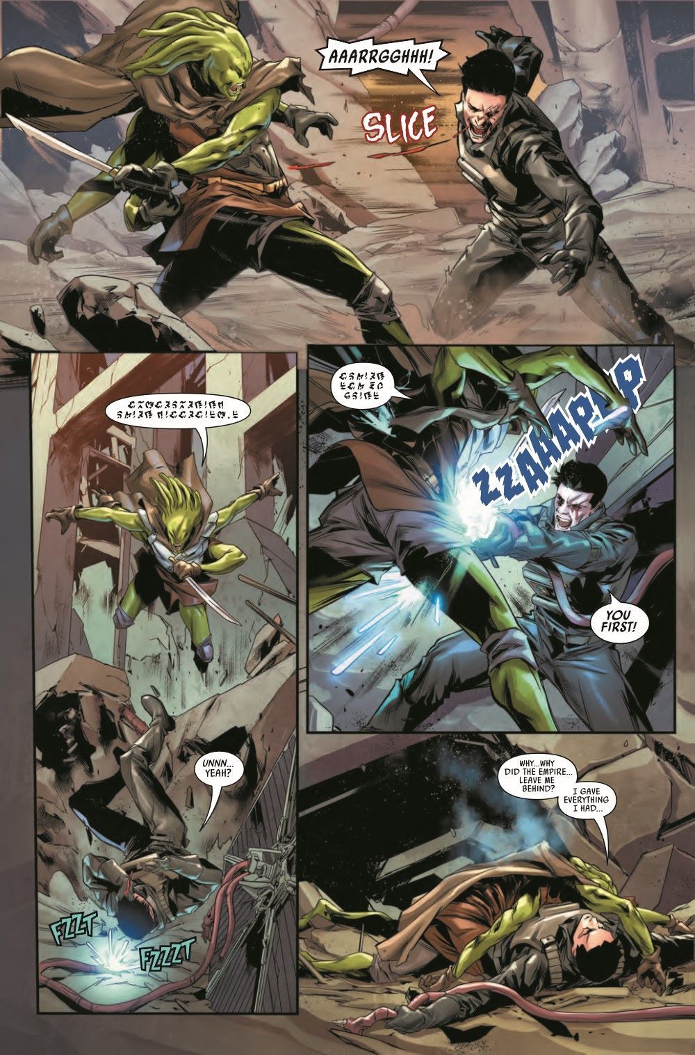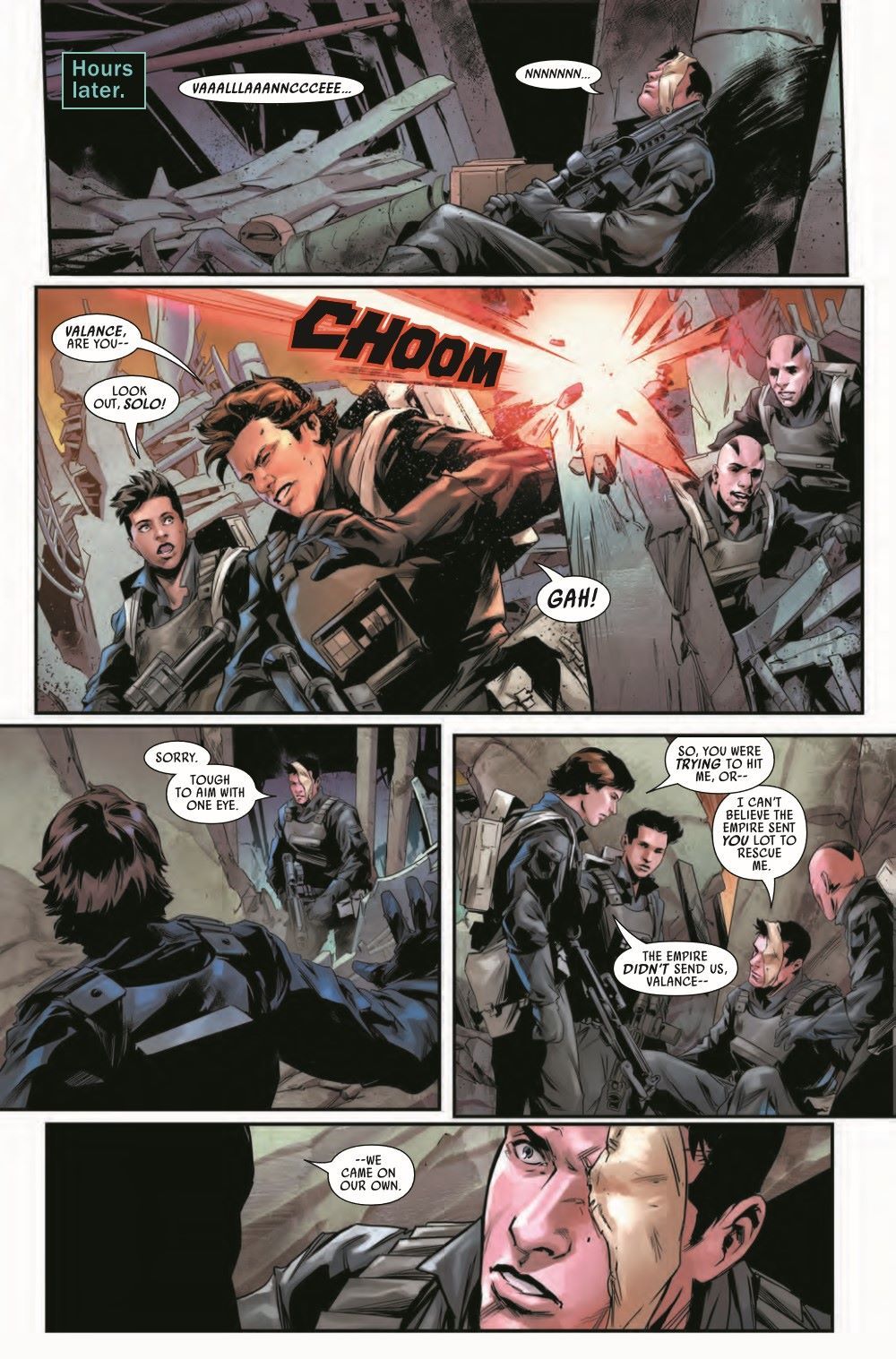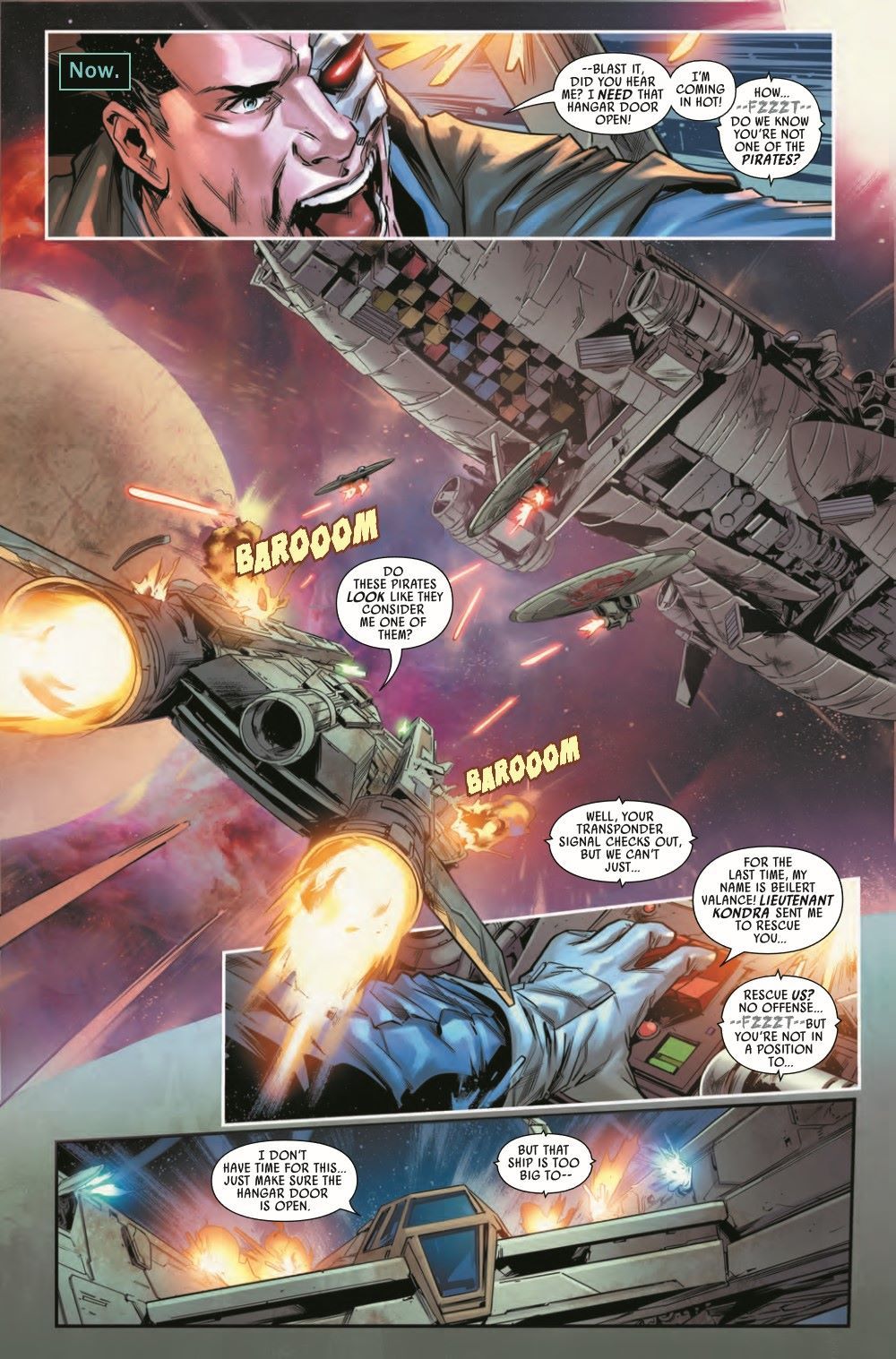 THE "TERMINUS GAUNTLET" CONTINUES! Trapped on a REBEL transport under attack by pirates, VALANCE must make a desperate gambit to survive. But little does the cyborg bounty hunter know he's on a collision course with his old rival, DENGAR! Plus, a familiar face makes a shocking return with a plan that will change the underworld forever.