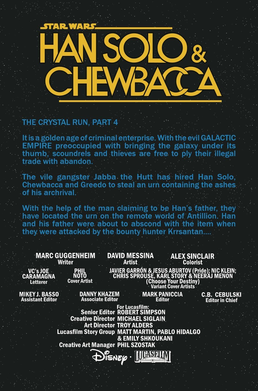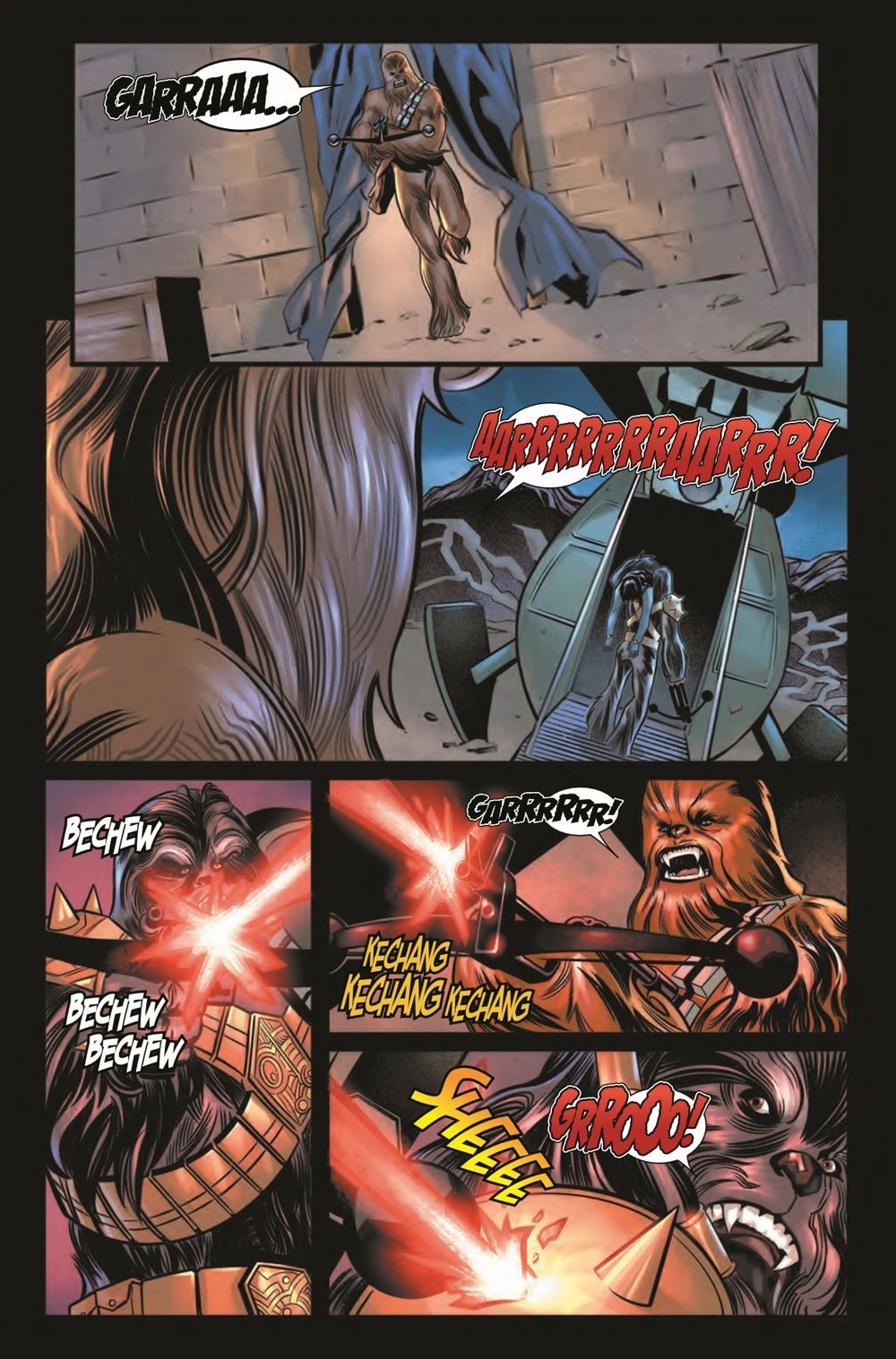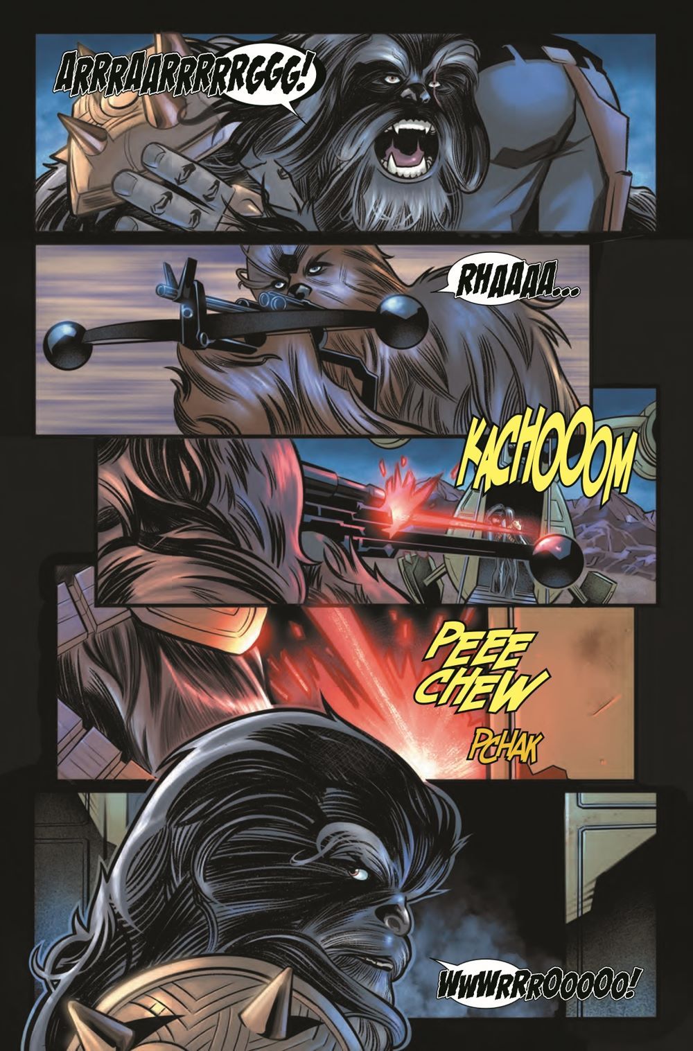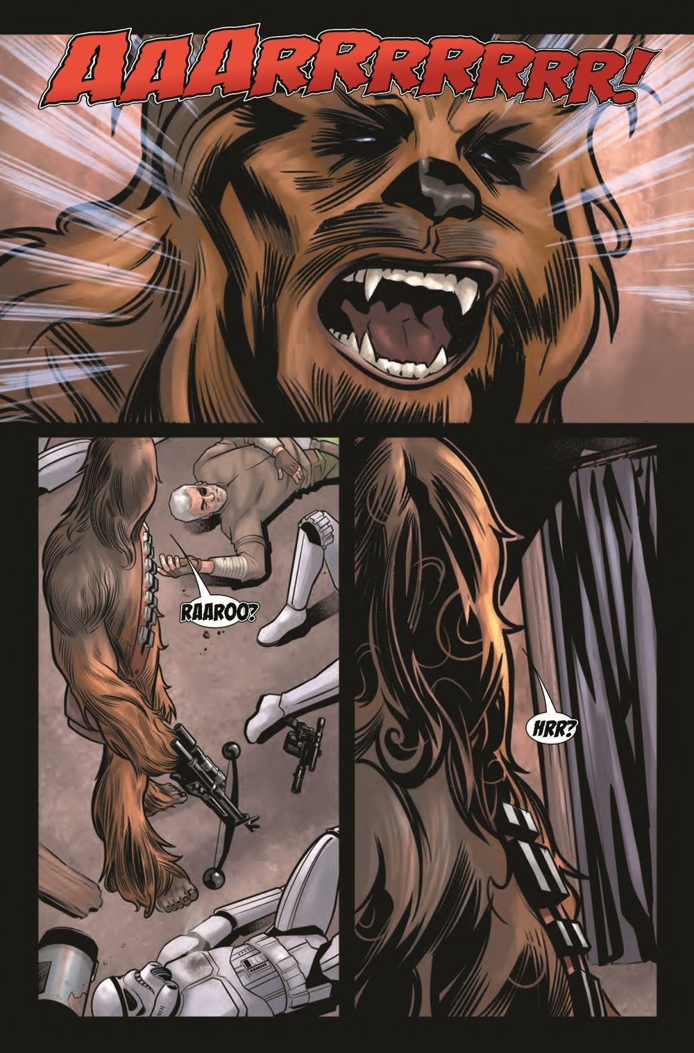 OH…SHYRIIWOOK! HARROO! RHOO AAHH! HRRG!!! (TRANSLATION: It's a Chewbacca-centric special issue as Chewie fights to rescue his friend Han.) HRRARRARGH AAHHRA HUGGG! (TRANSLATION: Guest-starring the one-and-only KRRSANTAN!) RRRAHARRR RAAA HRRRA! (TRANSLATION: You don't want to miss this one!)