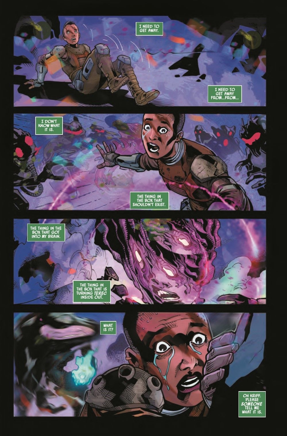 THE HUNT FOR LOURNA DEE CONTINUES! • The NIHIL have unleashed a nameless terror against the Jedi. MARSHAL AVAR KRISS is more determined than ever to bring LOURNA DEE to justice, but does STELLAN GIOS and the JEDI COUNCIL agree? • As KEEVE TRENNIS struggles with what she experienced on the Nihil base, the Jedi prepare for war. • PLUS, the truth about SSKEER is finally revealed – but what does it mean for his future?