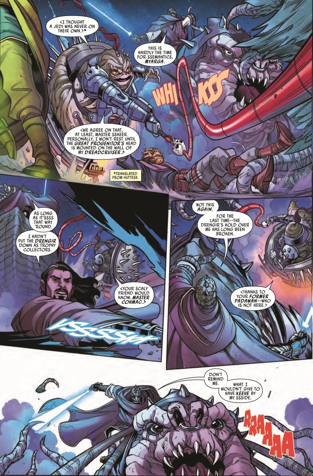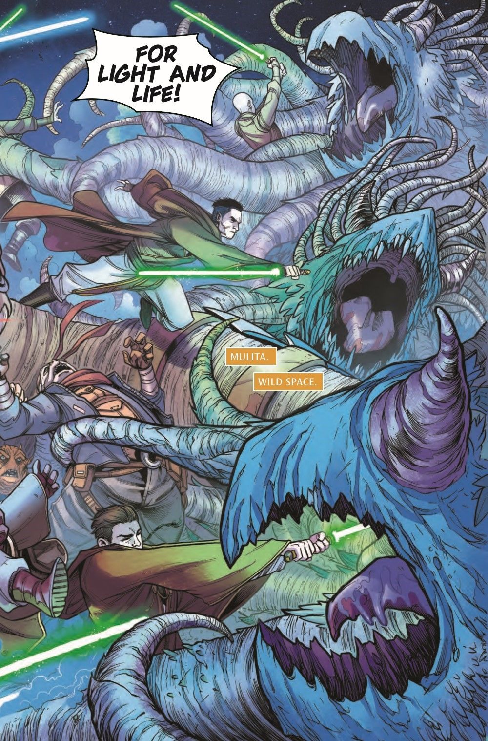 THE BATTLE AGAINST THE DRENGIR REACHES ITS THRILLING CLIMAX! AVAR KRISS has gathered a team of JEDI to take the fight to the DRENGIR deep in WILD SPACE, but KEEVE TRENNIS is nowhere to be seen. Are other forces at work on the Drengir's deathworld? Guest-starring a host of High Republic Jedi! COHMAC VITUS! REATH SILAS! THE STAR HOPPER PADAWANS!