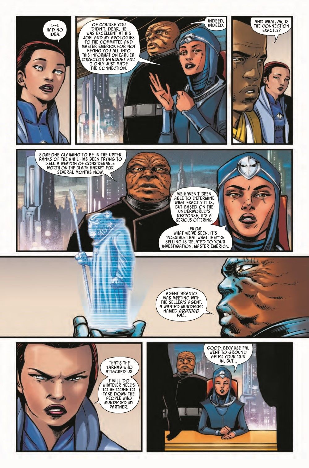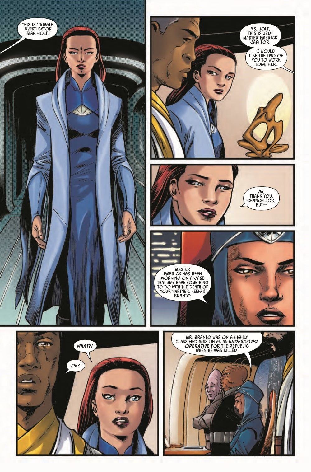 EMERICK AND SIAN FACE TOTAL AN-NIHIL-ATION! • As dead ends and loose threads mount in Jedi Master Emerick Caphtor's investigation, he's called to Coruscant, where Chancellor Soh introduces him to his new partner: private eye Sian Holt. • Together, they must go undercover to infiltrate one of the most crime-riddled and dangerous planets in the galaxy. • Will Emerick's duty to the Republic get in the way of Sian's personal vendetta? Time's running out to close this case...and what do the Nihil have to do with any of this?!