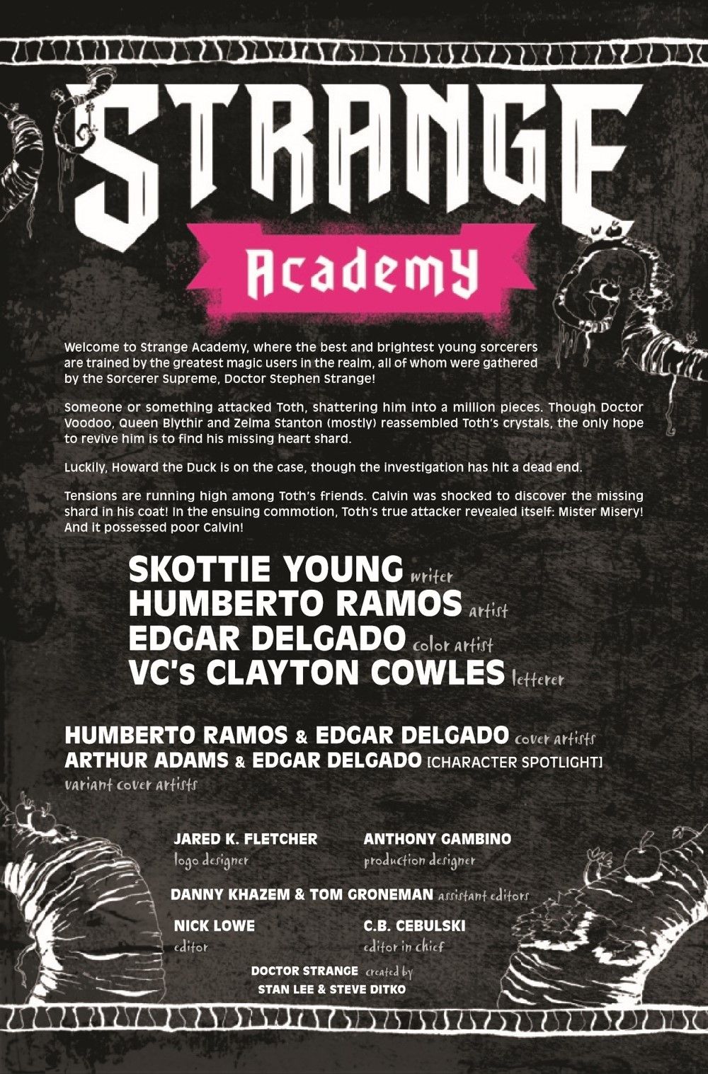 The person who shattered Toth is revealed, and it brings the second story arc of STRANGE ACADEMY to a rip-roaring climax!!! Pieces of the Marvel Universe and Doctor Strange's past come back to haunt not Stephen Strange, but the students of The Strange Academy. But that doesn't wash the hands of the person at Strange Academy who may just bring the whole. School. Down.