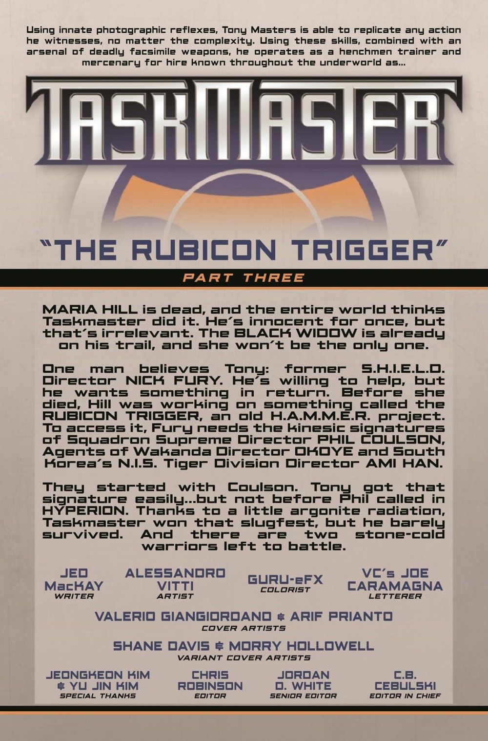 TARGET: AMI HAN! Taskmaster's journey to clear his name brings him to South Korea's national super human espionage agency! But before he can target Director Han, he'll have to go toe-to-toe with the White Fox!