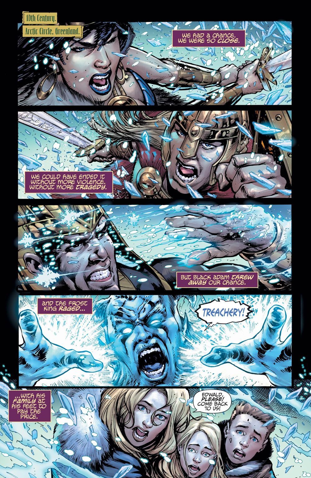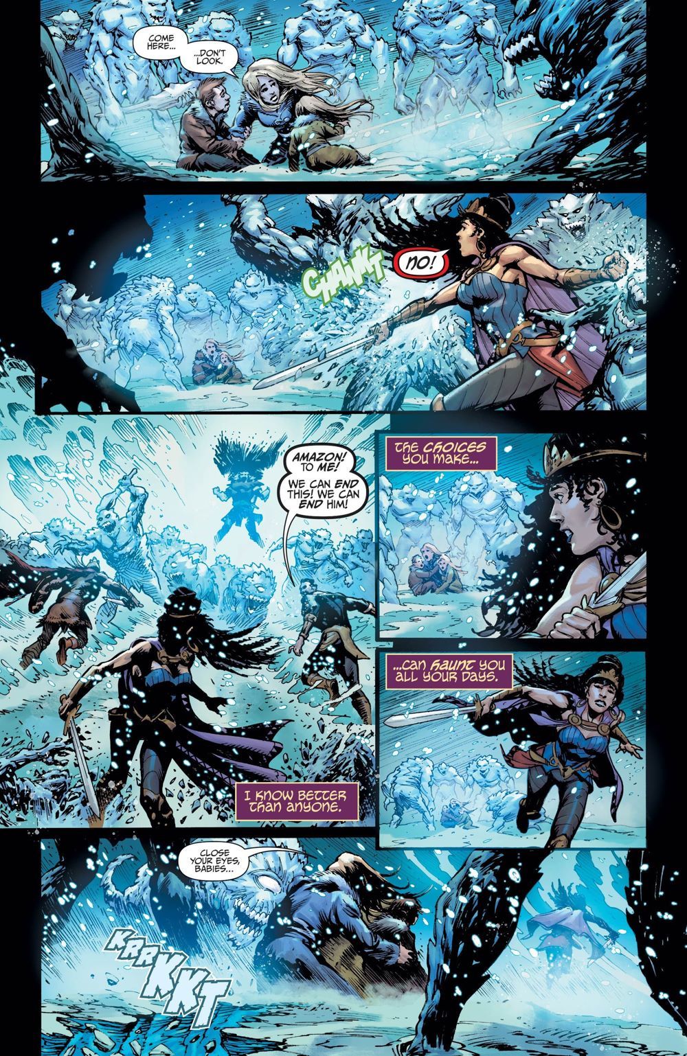 Endless Winter chapter six! Crush, Roundhouse, Kid Flash, and Red Arrow embark on a bonding exercise with new partners from the original New Teen Titans: Donna Troy and Beast Boy? Everyone's limits will be tested as they brave the challenges of holiday shopping in Manhattan! And then, the city is buried in snow! When they discover a teen whose powers are triggered by the extreme cold, the team must decide if this new arrival is a future hero or villain. And in the past, Black Adam battles the Frost King with devastating consequences.