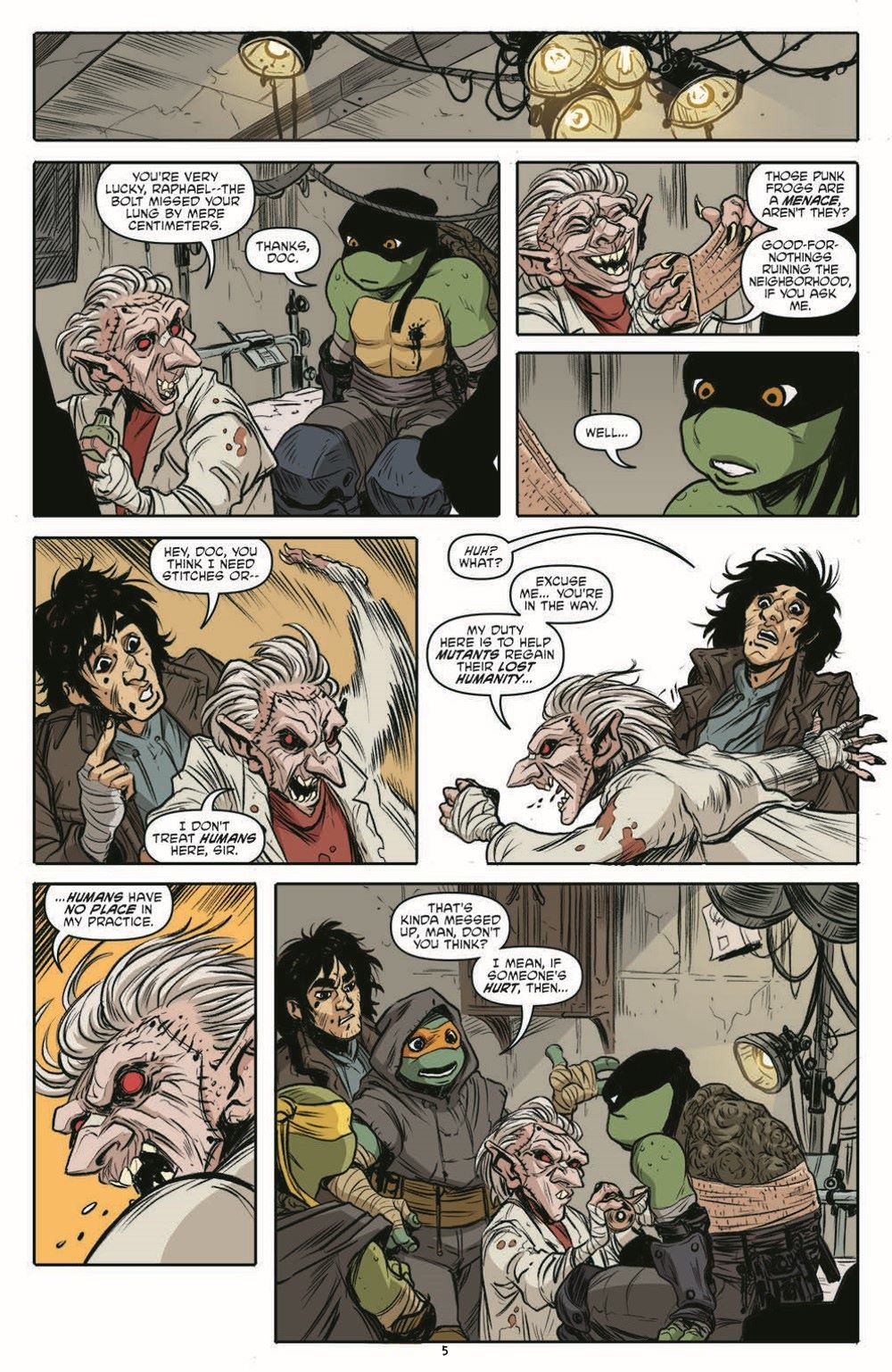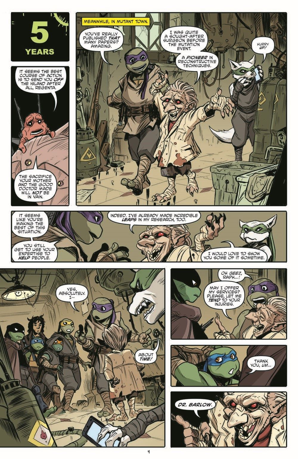 Who is Dr. Jasper Barlow, and is he friend or foe? As the TMNT regroup from their battle with the Punk Frogs, the doctor makes some of our heroes an offer they may find hard to refuse, and reveals a most startling creation he calls... VENUS. Plus, a tense situation between the Utroms and Triceratons goes from bad to worse!