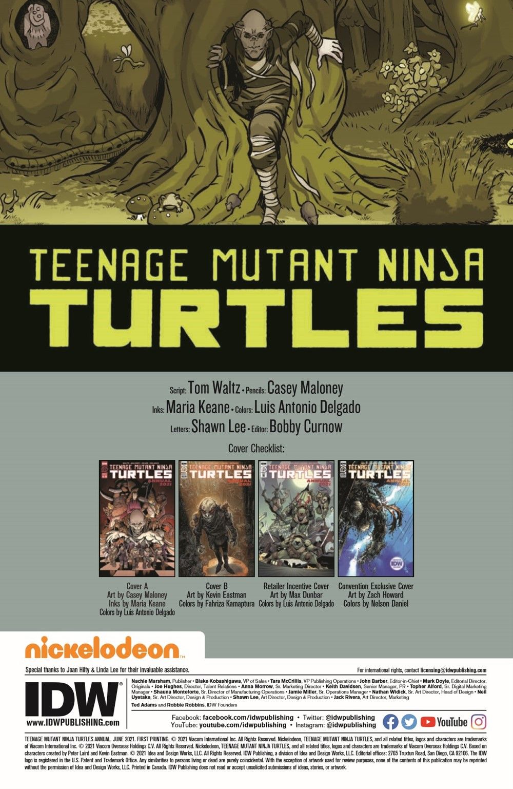 For millennia, the Pantheon family have played a deadly chess game with humanity, willingly sacrificing innocent and guilty alike in their twisted pursuit of victory. But now, one member of the family sees the opportunity to end the eternal contest once and for all — a final, crushing triumph over his immortal siblings and all of human- and mutant-kind. The time has arrived for the Rat King to make his most chaotic and destructive moves yet. The time has come at last for… THE ARMAGEDDON GAME! Written by Tom Waltz and illustrated by Casey Maloney, Teenage Mutant Ninja Turtles Annual 2021 is the official prelude to the major TMNT event years in the making.