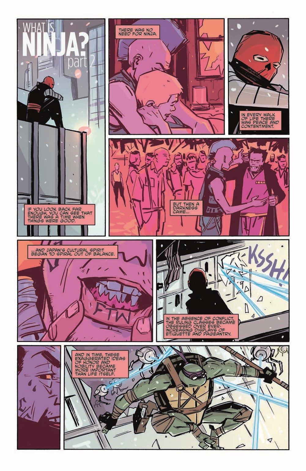 Trying to acclimate to life as a mutant, the newest Turtle, Jennika, will be forced to come to terms with both her troubled past and conflicted present. In search of a dangerous procedure to reverse mutation, will Jennika be tempted by the call of her old life? And how far will she go to save those who gave up on her long ago? Brahm Revel returns from his acclaimed TMNT Universe tale "What is Ninja?" to reveal more of Jennika's backstory!