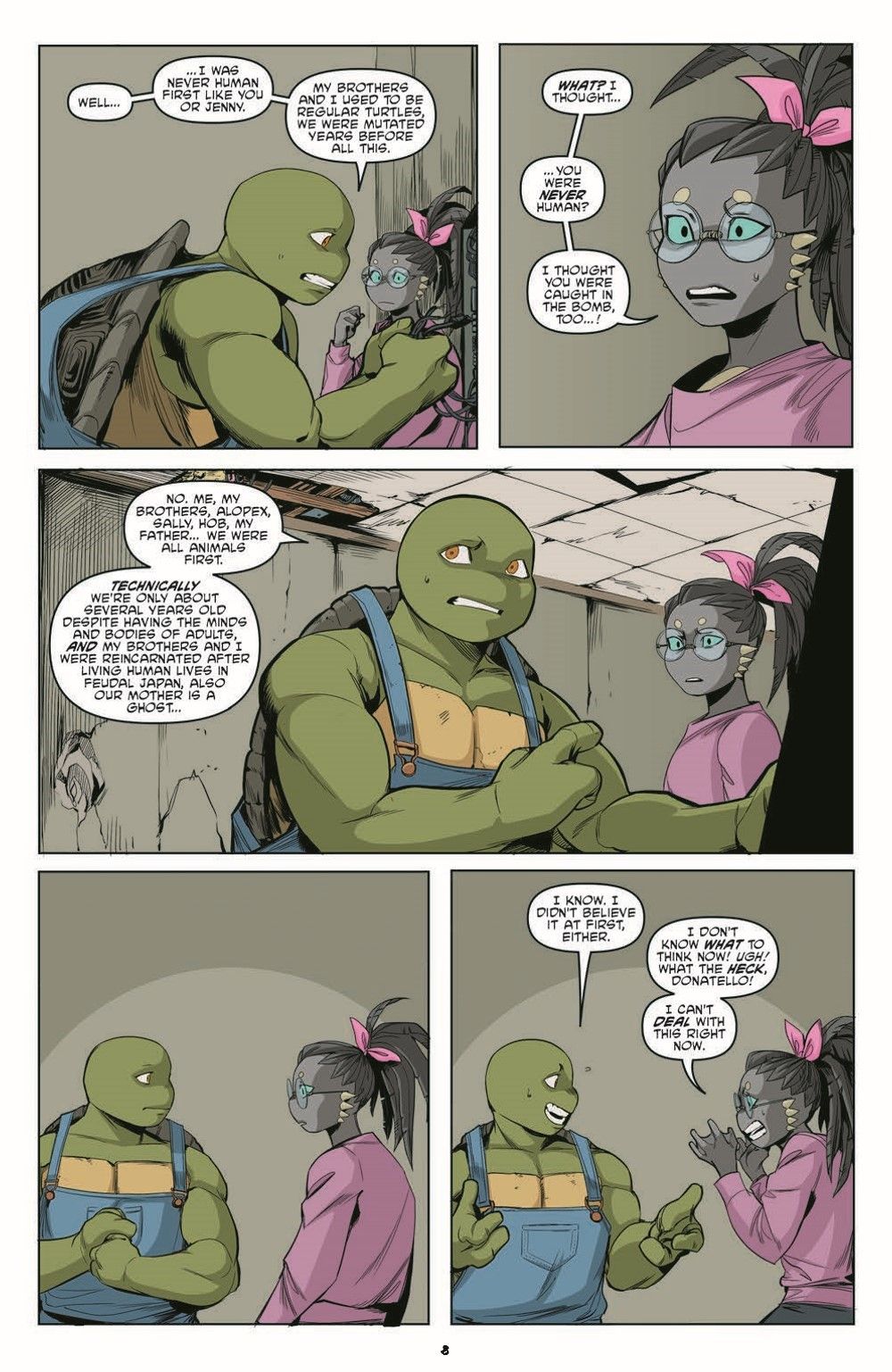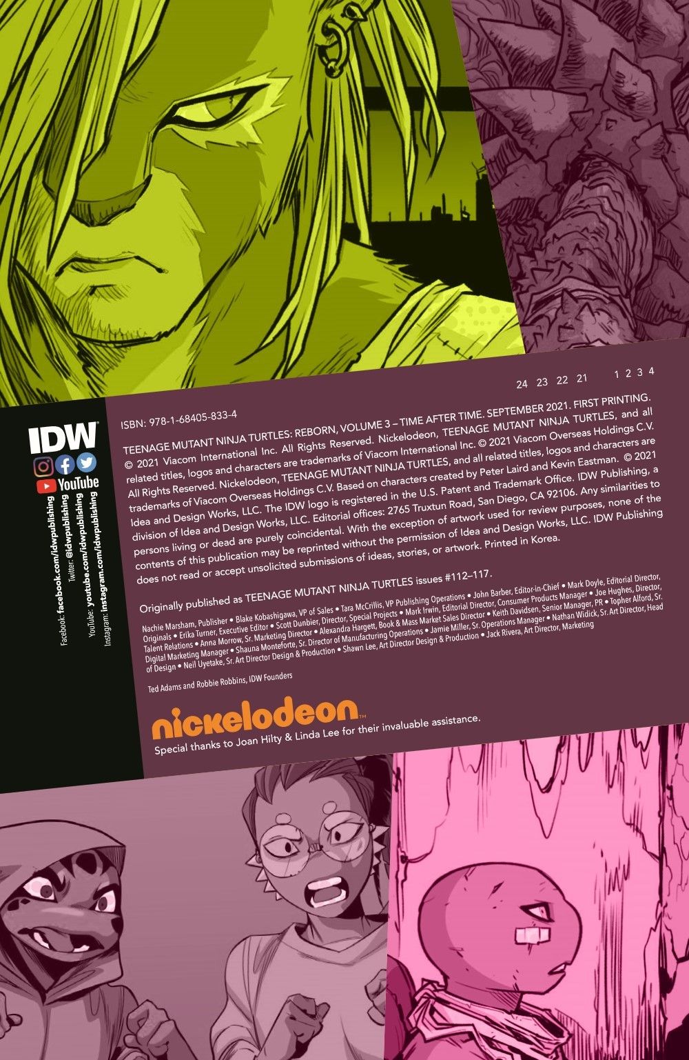 Then, when Jennika comes face to face with the person who almost killed her, will the other Turtles be able to stop her from exacting revenge? And, it's the biggest battle of the year as Bebop and Rocksteady take on Tokka and Rahzar! Collects issues #112-117 of IDW's Teenage Mutant Ninja Turtles.