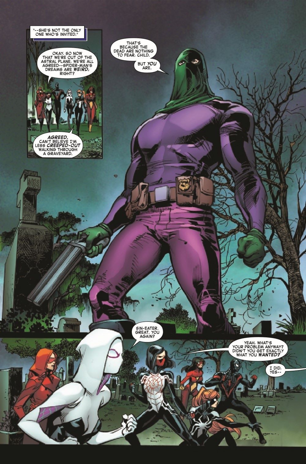 LAST REMAINS TIE-IN! The Order of the Web faces Sin-Eater. And if you saw what Sin-Eater did to Spider-Man in ASM #49, you know just how much trouble the other Spiders are in! Also, what is Mary Jane Watson's part in "Last Remains"? Don't miss this chapter that raises her stakes by about a million times!