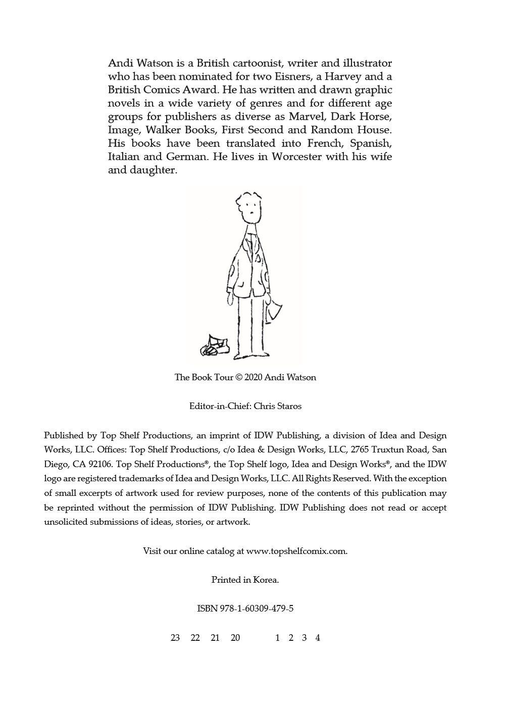 In his first book for adults in many years, acclaimed cartoonist Andi Watson evokes all the anxieties felt by every writer and compresses them into a comedic gem of a book. Witty, surreal, and sharply observant, The Book Tour offers a captivating lesson in letting go