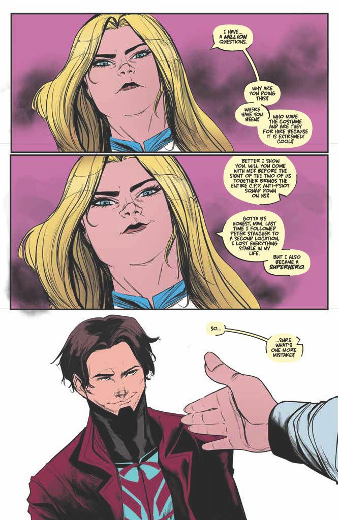 THE HARBINGER #6 is co-written by COLLIN KELLY and JACKSON LANZING (Captain America: Sentinel of Liberty, Batman Beyond: Neo Year), features art by ROBBI RODRIGUEZ (Spider-Gwen, Batgirl), colors by RICO RENZI (Mister Miracle: The Source of Freedom, The Unbeatable Squirrel Girl), letters by HASSAN OTSMANE-ELHAOU (X-O MANOWAR, The Blue Flame), and covers by ROBBI RODRIGUEZ,MARGUERITE SAUVAGE, and CASEY PARSONS.