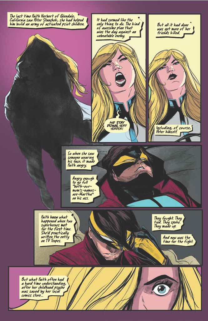 The high flying Faith Herbert confronts her past face to face with THE HARBINGER himself, Peter Stanchek, as the war for Chicago begins and none other than Psiot City is first in the line of fire! Peter now must learn from the past that had been stolen from him and stand alongside his friends put a stop to The Renegade and Blam. But as the battle just begins with Psiots everywhere being targeted, is it already too late to save the day?