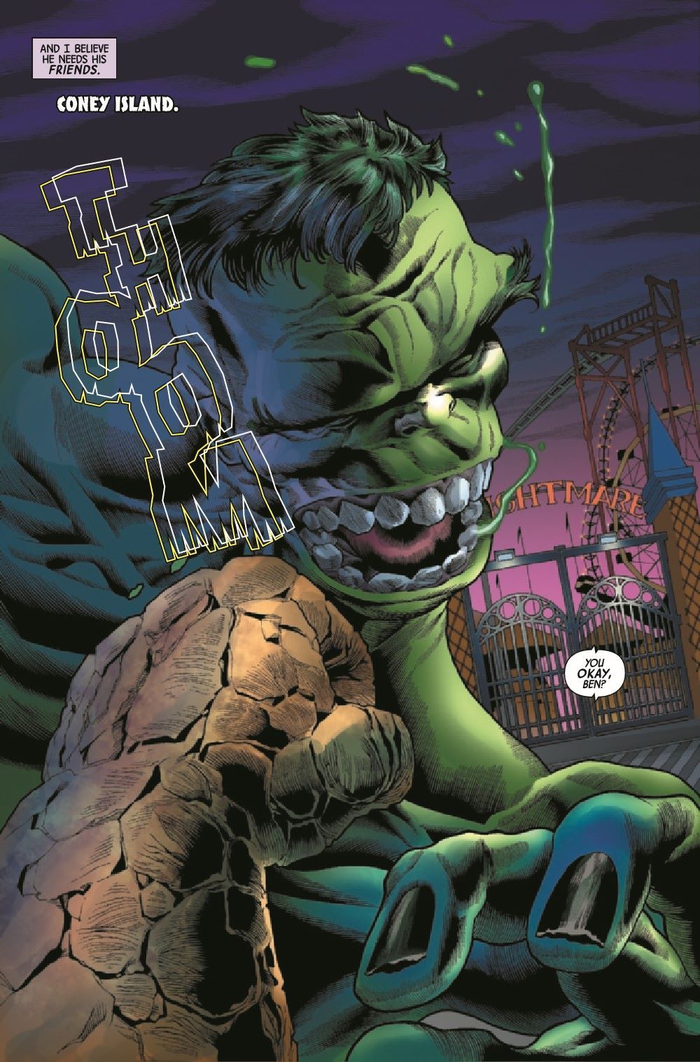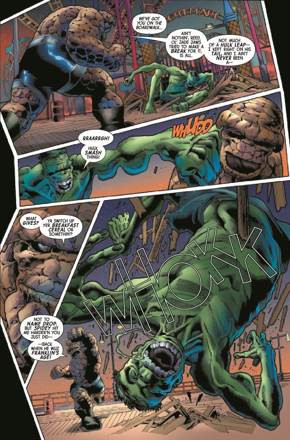 The rematch everybody wanted - but not like this! The Hulk is broken, friendless and hunted. In every way, he's a shadow of his former self... ...but there's nothing like the real THING.