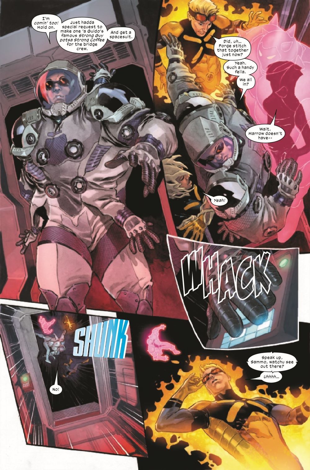 SSHHH - IT'S THE X-MEN! When the Shi'ar Empire faces an unexpected threat, they must call upon the X-Men. Team co-captains Sunspot and Cannonball must lead Marrow, Tempo, Forge, Banshee, Strong Guy, Armor, and Boom-Boom on a secret mission to save Empress Xandra. Wait, those aren't the X-Men. Aren't those the mutants who lost the election?
