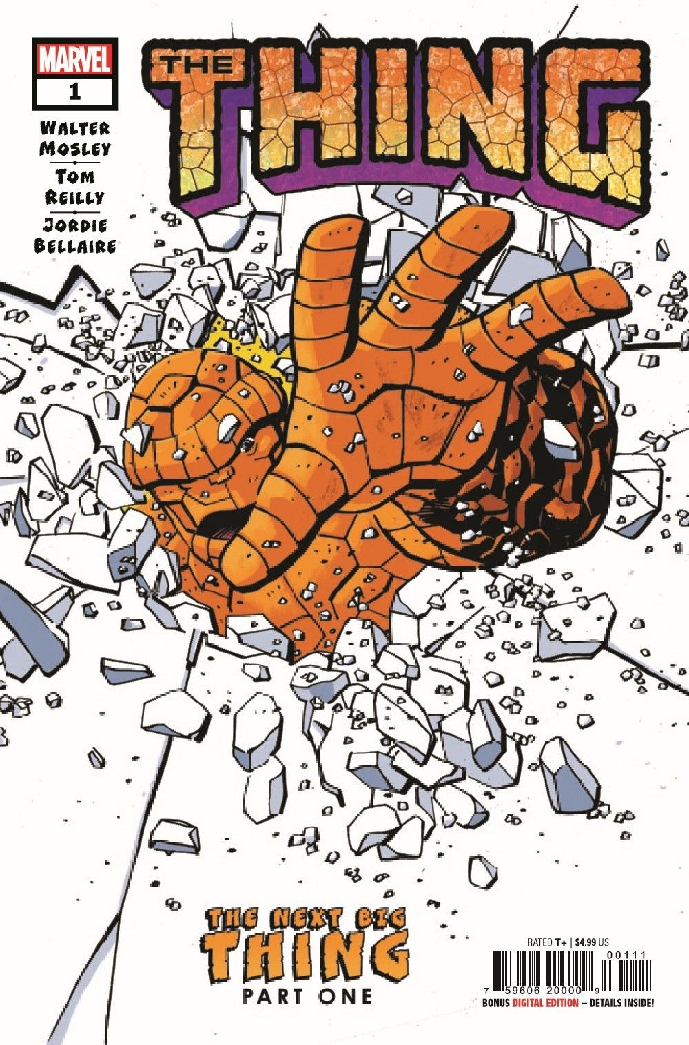 THE NEXT BIG THING Begins Here! Renowned storyteller Walter Mosley brings his signature style to a sweeping saga of Yancy Street's favorite son that will range from the urban sprawl of the back alleys of Manhattan to the farthest reaches of the cosmos itself! A lonely evening and a chance encounter (or is it?) sends Ben Grimm embarking on a sojourn that will have him encountering – and battling – figures both old and new. Featuring guest appearances from figures drawn from throughout the Marvel Universe as well as precision artwork by Tom Reilly, THE NEXT BIG THING will remind audiences why the Thing is one of the most popular and beloved characters in the history of comics!