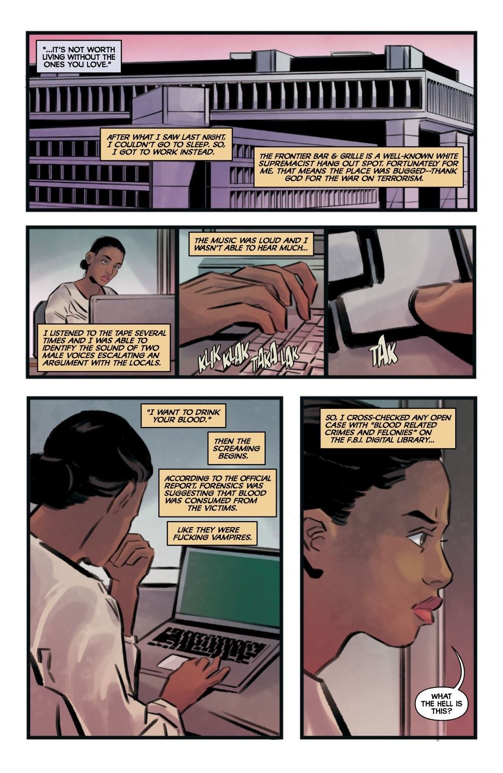 It's modern times for The Vain, and life has certainly changed. Their relationships have fractured, they're close to being caught, and even blood goes bad. Just as their secret caches of healthy human sustenance runs dry, the news breaks–-the government has developed synthetic blood that will never deteriorate. It's time for one last big score!