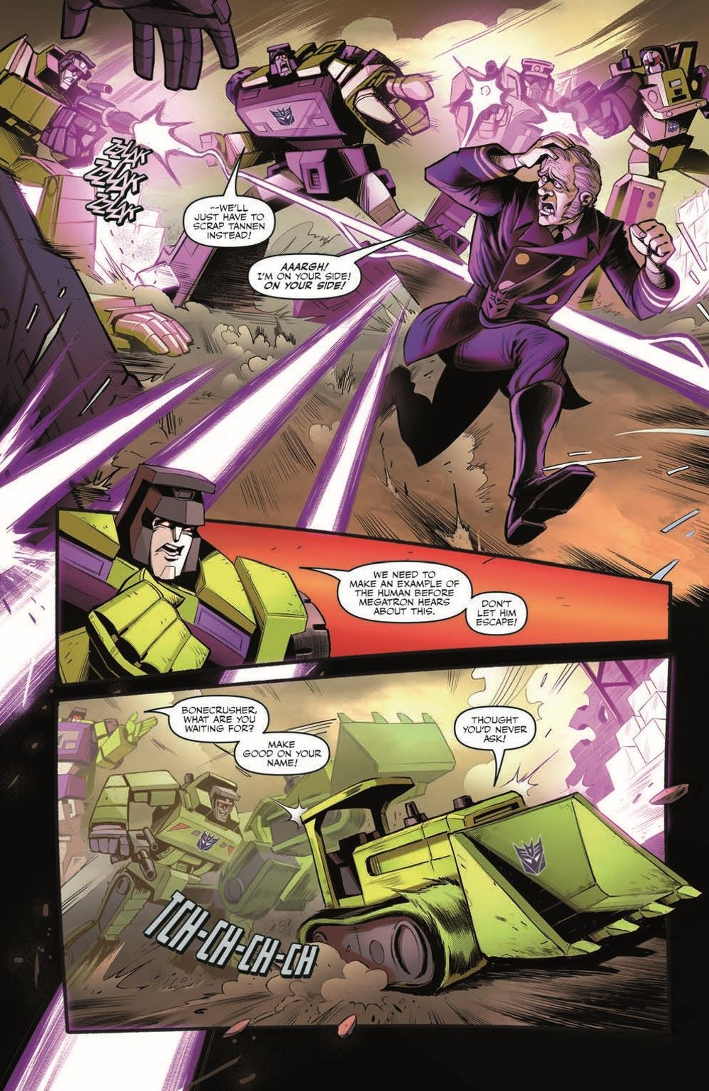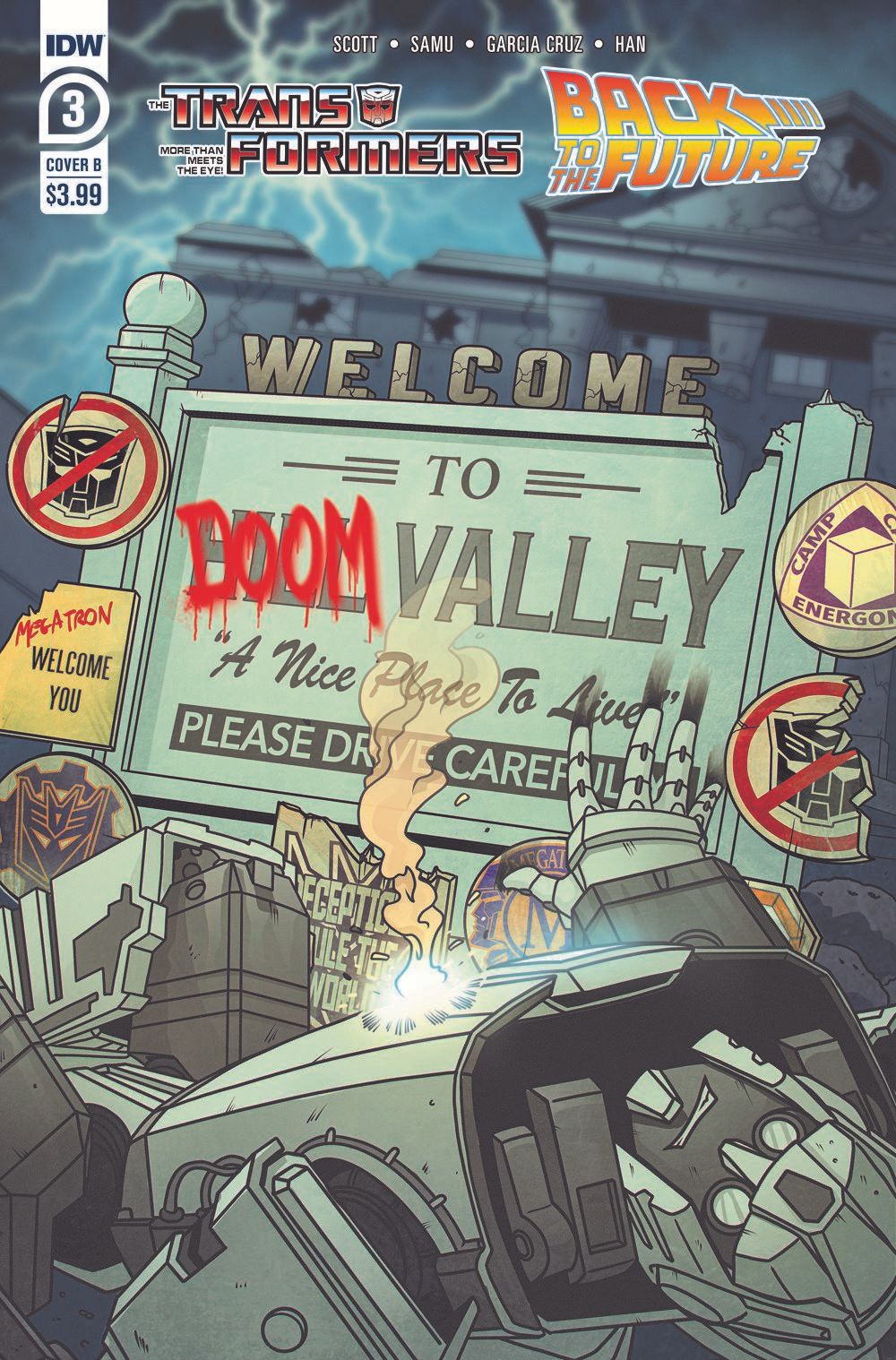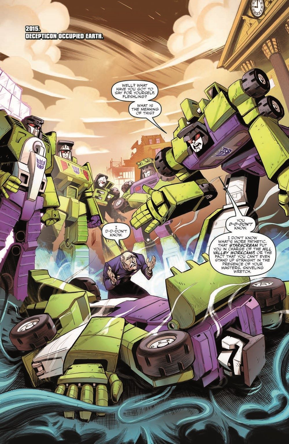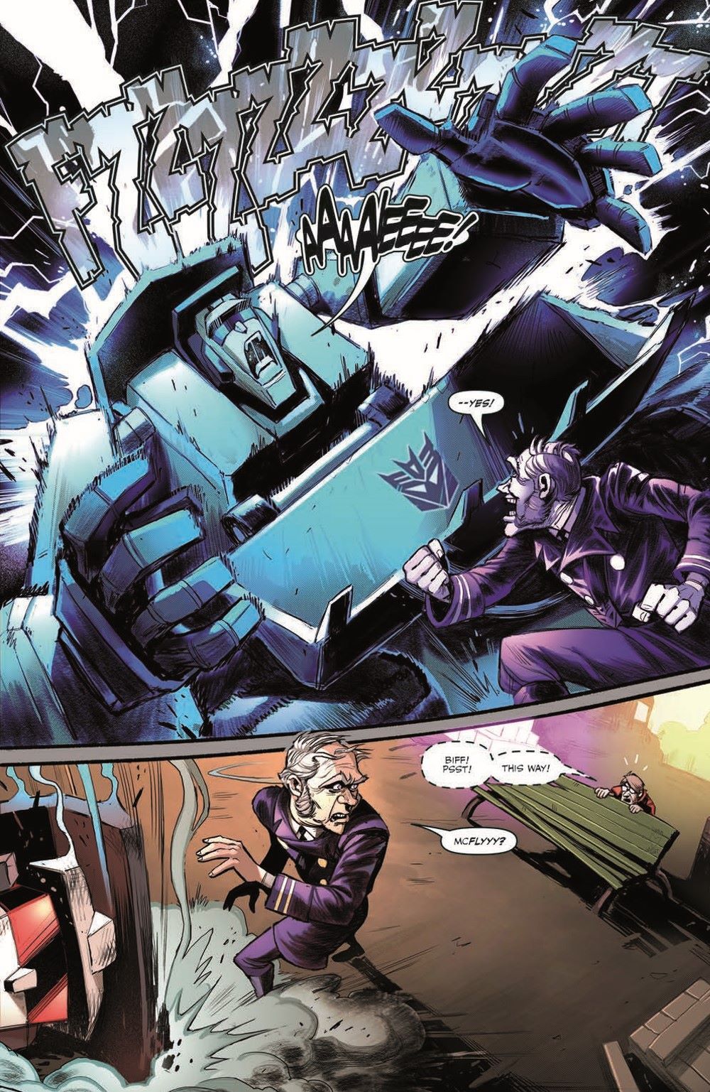 Where—and when—are Marty McFly and his pal, the Autobot Gigawatt? That's what Biff Tannen wants to know because if he can find them, he can help his bosses—the Decepticons—find what's left of the Resistance and pound 'em into next week. And if Biff can't find them… well… he'd better prepare to be on the receiving end of a Decepticon whupping!