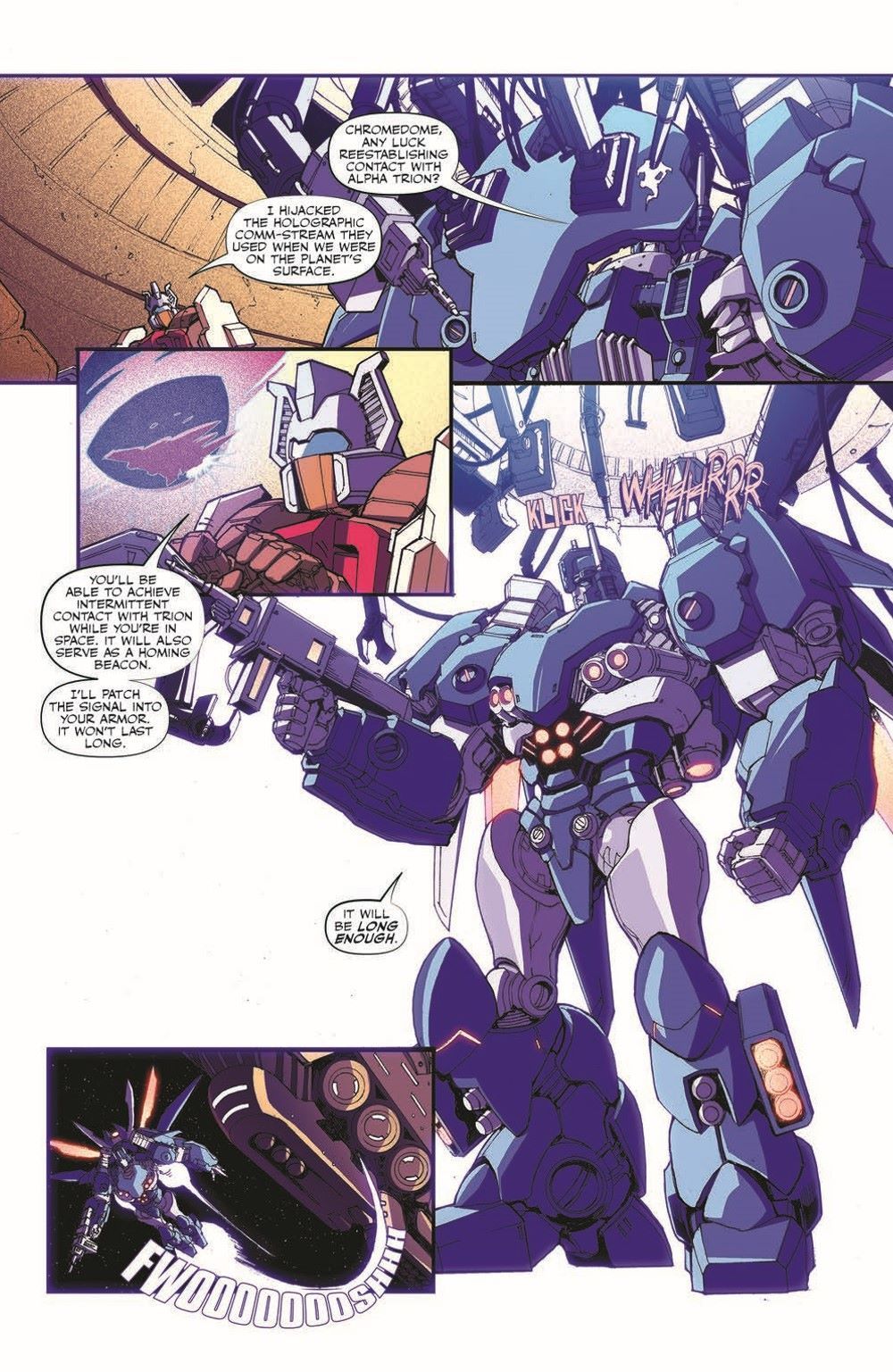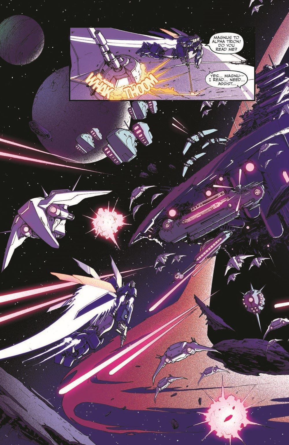 "Storm Horizon", Part Three! Outfitted with heavy-duty battle armor and nearly alone, Ultra Magnus must go head-to-head with a fleet of enemy ships and a black hole if he ever wants to save the rest of his crew and Alpha Trion! It's wall-to-wall action as he finally faces the mastermind behind his recent troubles in the thrilling final issue of Transformers Galaxies that leads into the next major events of the Transformers ongoing, starting this fall!