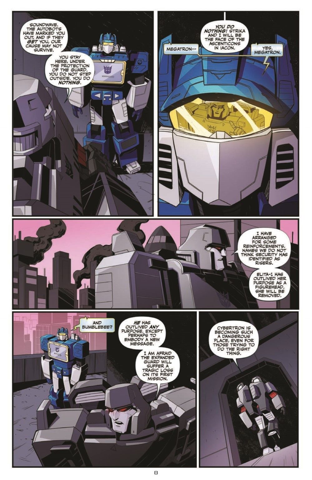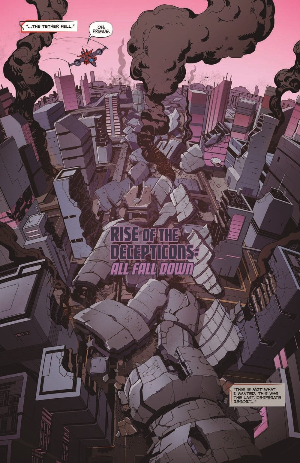 Crisis! The tether holding Cybertron's inner moon to the planet has fallen and hundreds of lives have been lost. As the rubble is sorted through, the Ascenticons are on the move, hoping to leverage the situation and the lives lost in their favor. Meanwhile, the Rise, now under Megatron's command, attempt to hide some of their most vicious members, but putting a bunch of killers in a single transport is never a good idea.