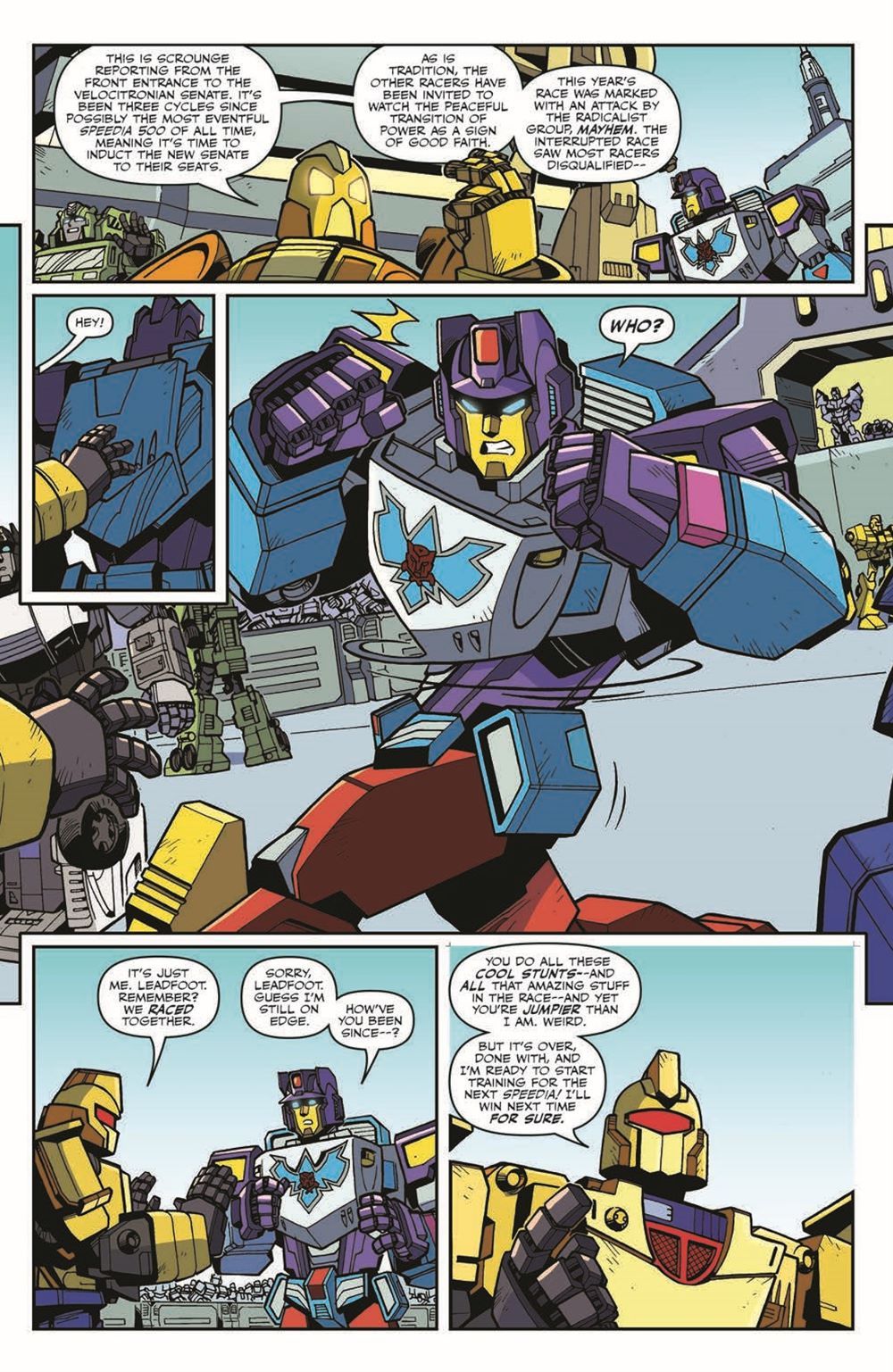 The Speedia 500 is over, so now Velocitron's attention turns to the swearing in of the new Senate-led by the race's winner! This is the Wreckers' last chance to put an end to Mayhem's rampage! But will they wreck and rule or be wrecked themselves?!