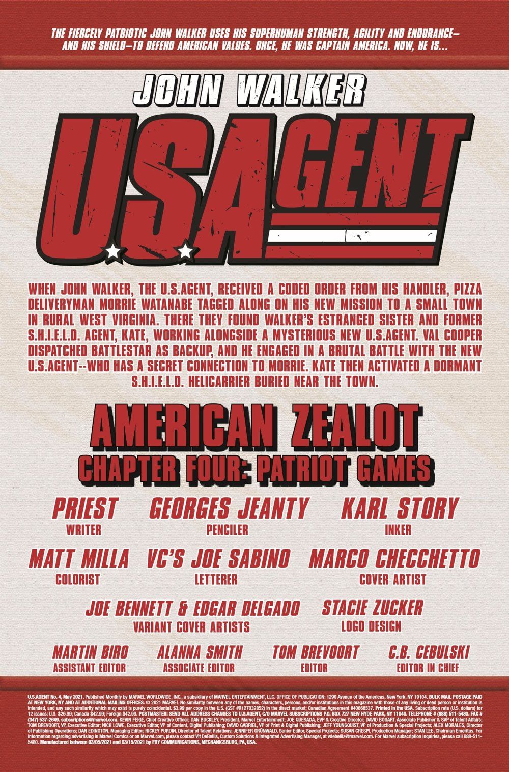 Conflicting visions of America intersect in a small mining town where long-buried S.H.I.E.L.D. secrets are unearthed, forcing a confrontation between John Walker and his own sister, who has commandeered powerful weaponry she is poised to unleash on the townsfolk Walker has sworn to protect.
