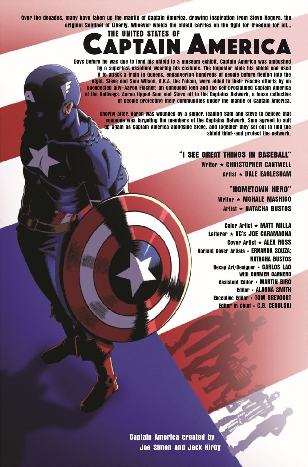 Steve Rogers and Sam Wilson are hot on the trail of the shield thief, but their adversary remains one step ahead, and he has friends in low places. Some of Captain America's oldest enemies are behind this scheme, but can Sam and Steve figure out who these enemies are and what they want, in time to stop them? And in a story by Mohale Mashigo (MARVEL VOICES: LEGACY) and Natacha Bustos (MOON GIRL & DEVIL DINOSAUR): Who is Nichelle Wright, the Captain America of Harrisburg? And will her community stand up for her when the shield thief frames her for a terrible crime?