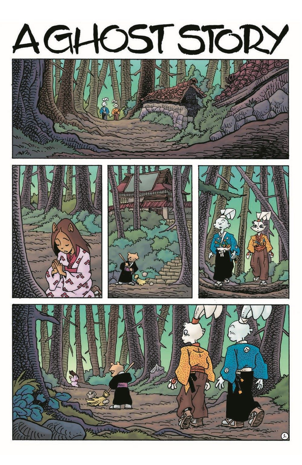 A Ghost Story (Part 1 of 1) Usagi and Yukichi come upon a young woman, Shizuye, praying at a shrine to a girl murdered fifty years ago by her married lover. Shizuye is in the same predicament, and Usagi and Yukichi take it upon themselves to become her protectors. However, all is not what it seems as the local priest warns them to beware of ghosts in the area.