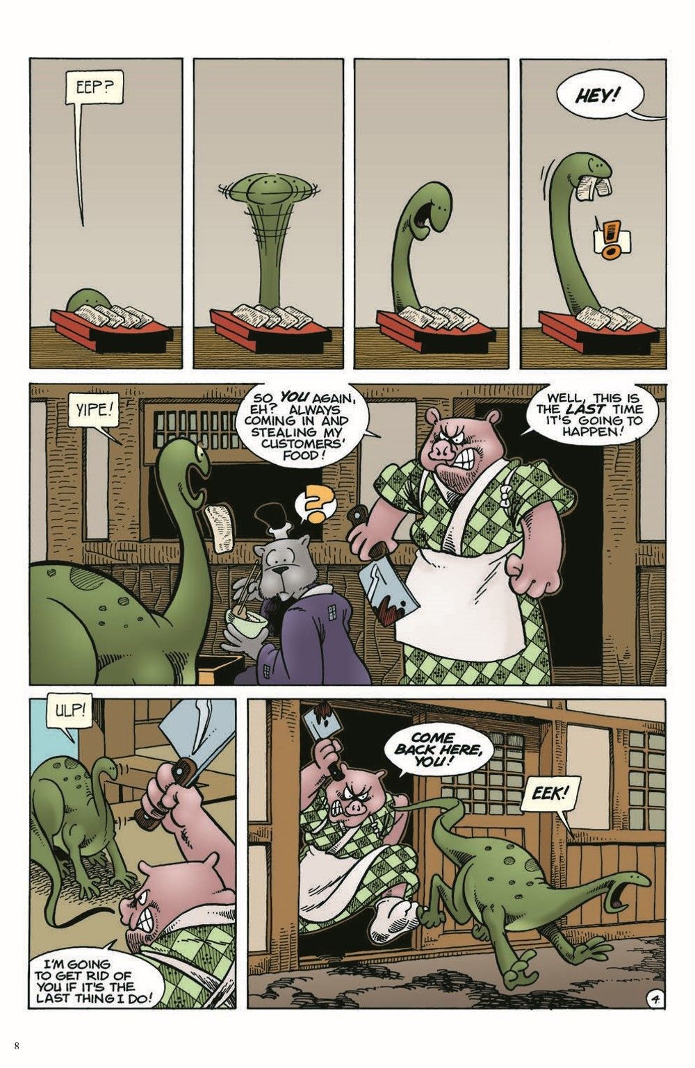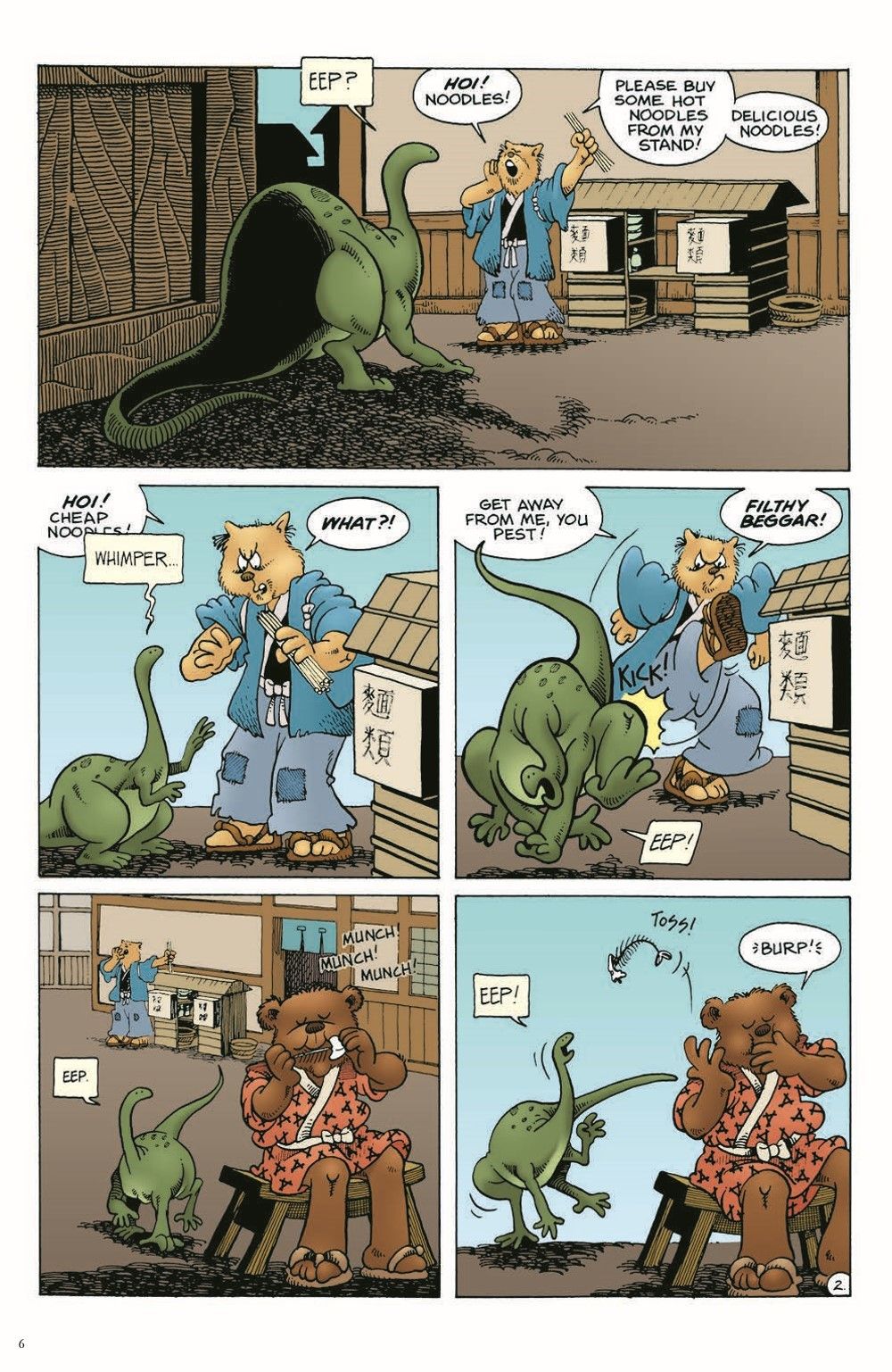 Usagi's cast of characters continues to expand with the first appearances of his longtime tokage (lizard) companion, Spot and his greatest nemesis -the demented, and perhaps immortal, wolf warrior Jei (Grasscutter)!