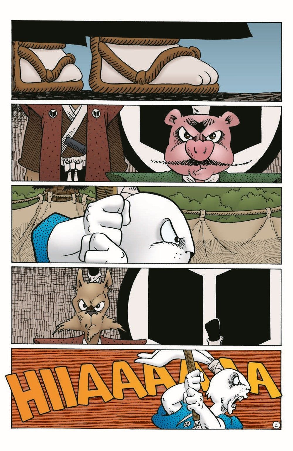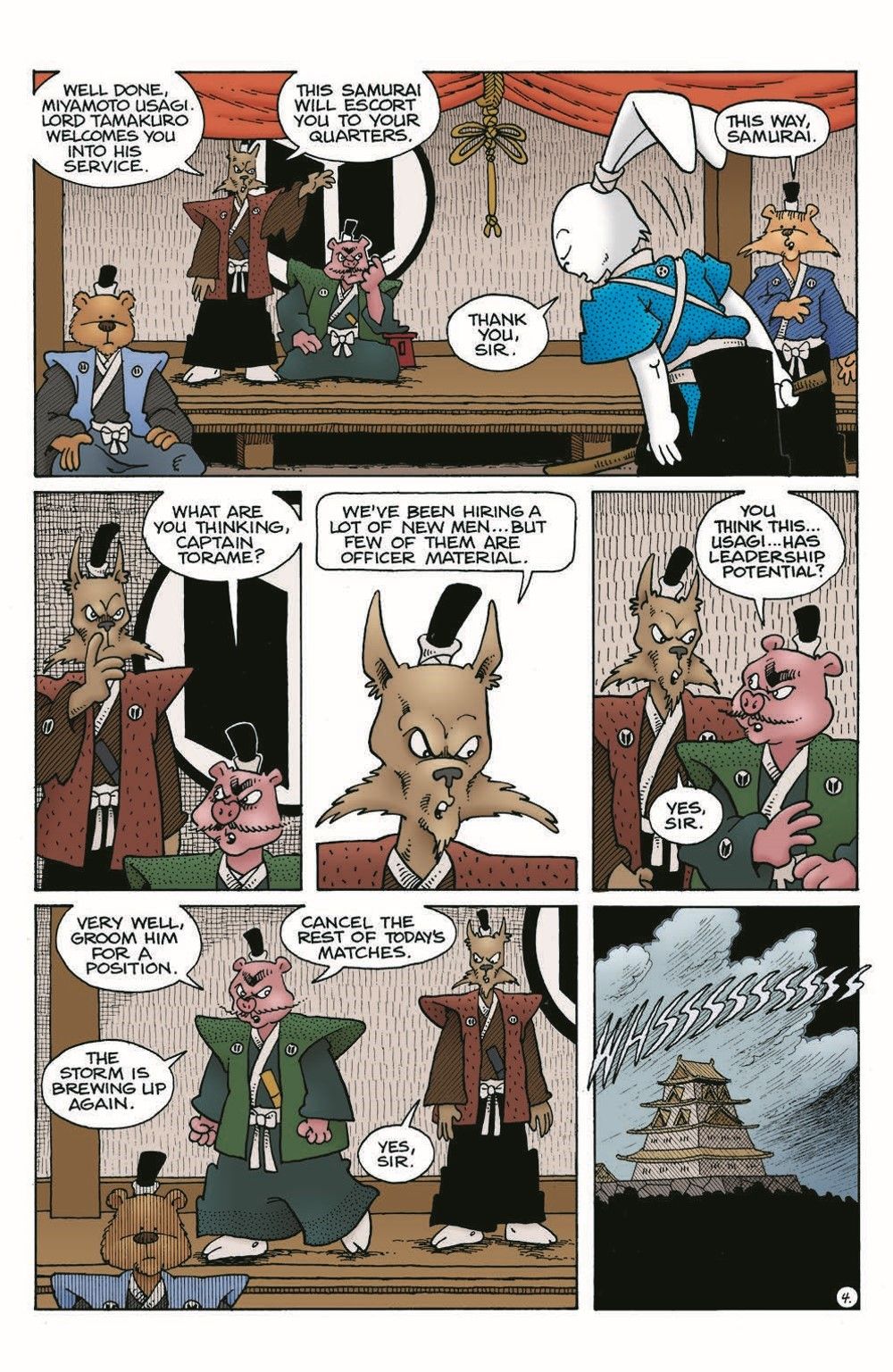 Usagi springs his friend Tomoe from captivity in a daring escape! Meanwhile, bounty-hunter Gen gets closer to his deadly prey, Zato-Ino, the blind Swordspig! All this and brand-new color add up to make this one of the most epic Usagi tales of all time!