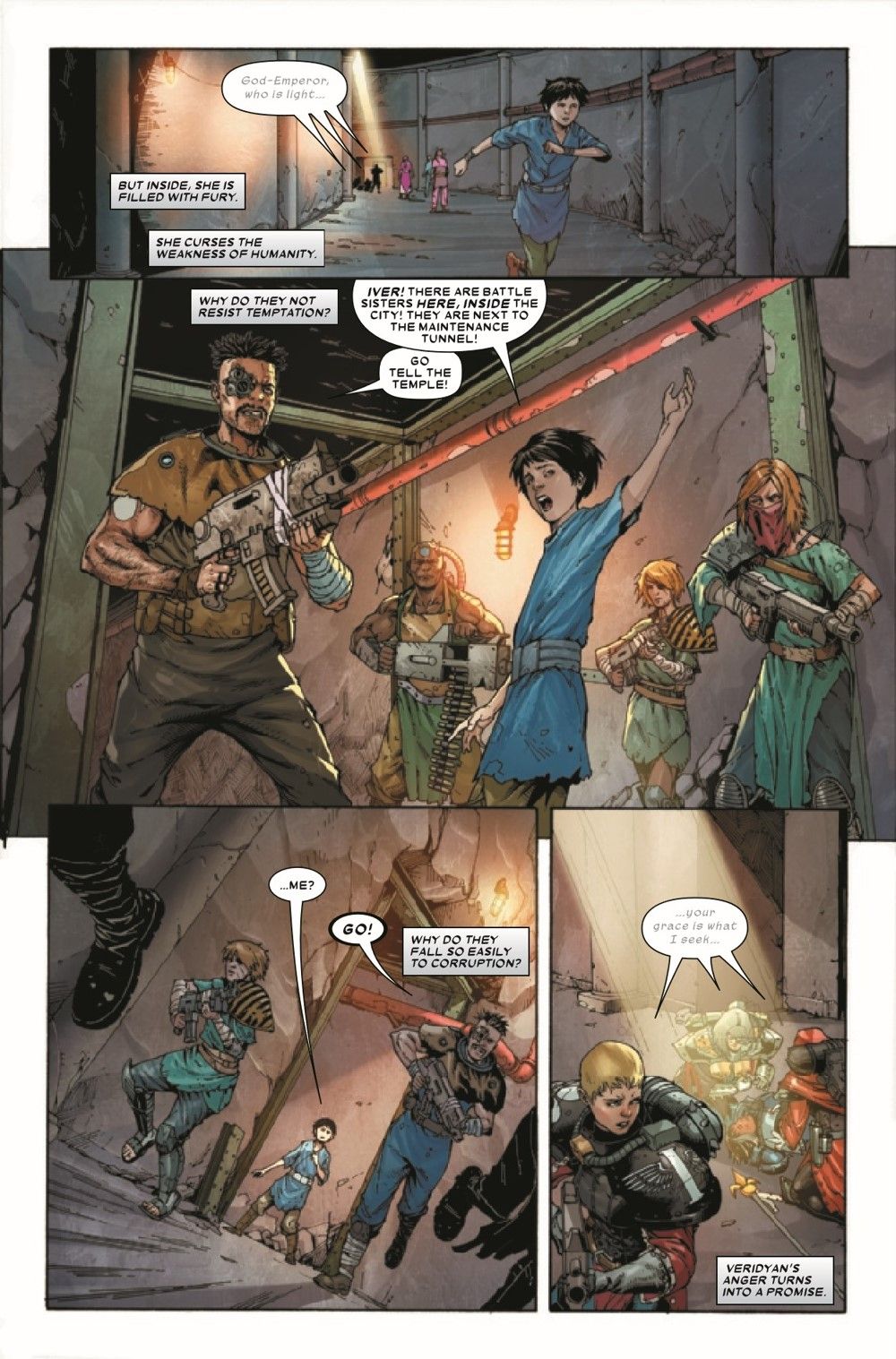 DAYS OF DEATH AND MIRACLES! A death in VERIDYAN'S ranks sends shock waves through the squad! Still, they travel deeper into the tunnels of Siscia...and only a miracle can save them now. But the Sisters' faith in the Emperor is never shaken - even in the face of CHAOS!