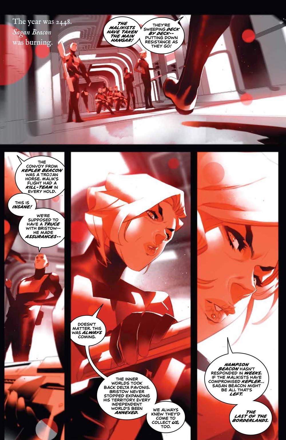 The third and final arc of this monumental sci-fi series continues with a flashback to a fateful death and new revelations about Honorhim Bristow and Dane Kahoe. But things go awry in the DMZ, and their capture by a looming figure seems imminent…