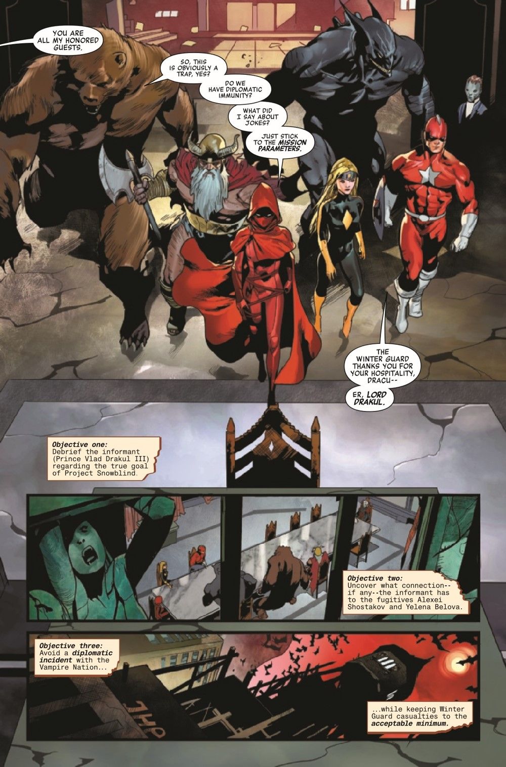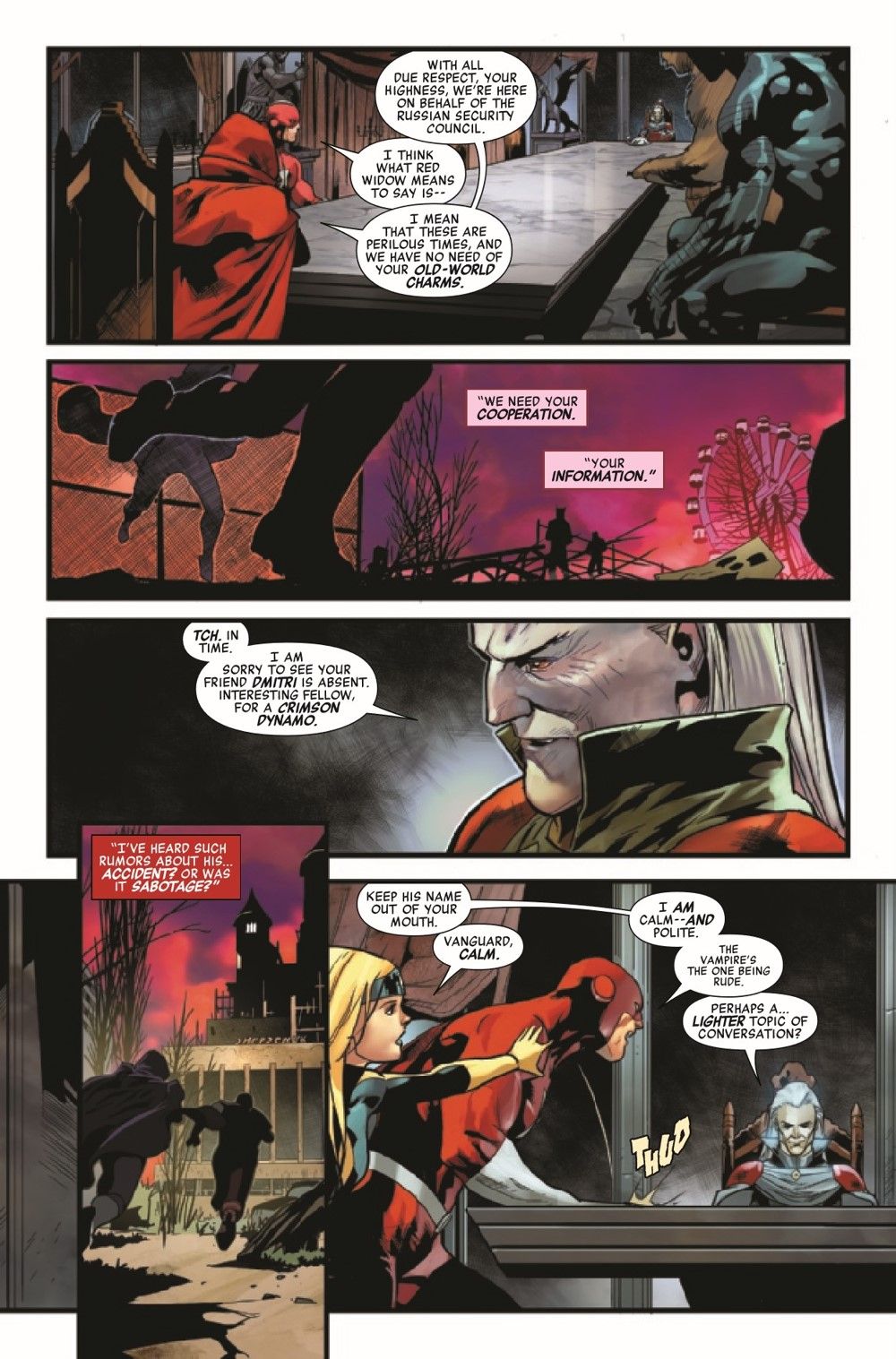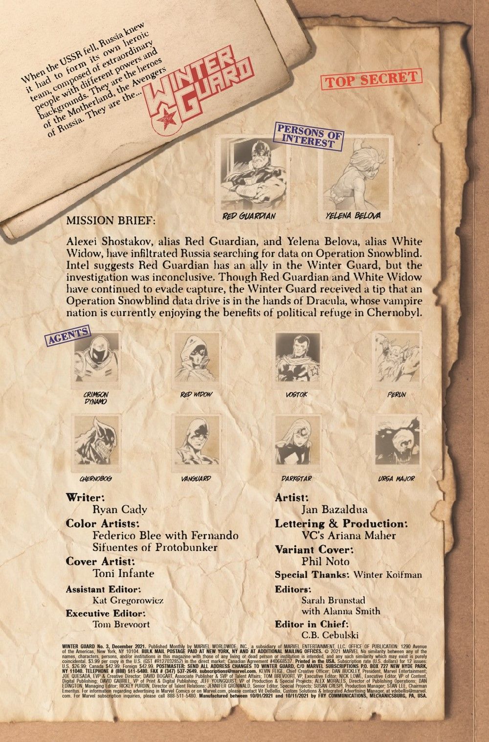 A SEAT AT THE TABLE! The White Widow and Red Guardian are ready to strike a bargain - but not with the Winter Guard. Red Guardian enlists help from a shocking source... but this is spy business, and "trust" is a mythical thing. Betrayals abound in the darkest corner of Russia as the hunt for project SNOW BLIND heats up!