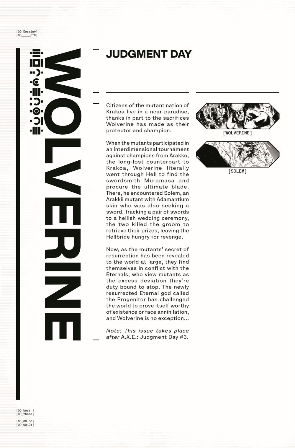 HELL ON EARTH - AN A.X.E. TIE-IN! The Hand's HELLBRIDE seeks revenge on WOLVERINE and SOLEM. But with Earth reeling from the revelations of A.X.E., a dire play from the Best There Is may be the planet's last, best hope!