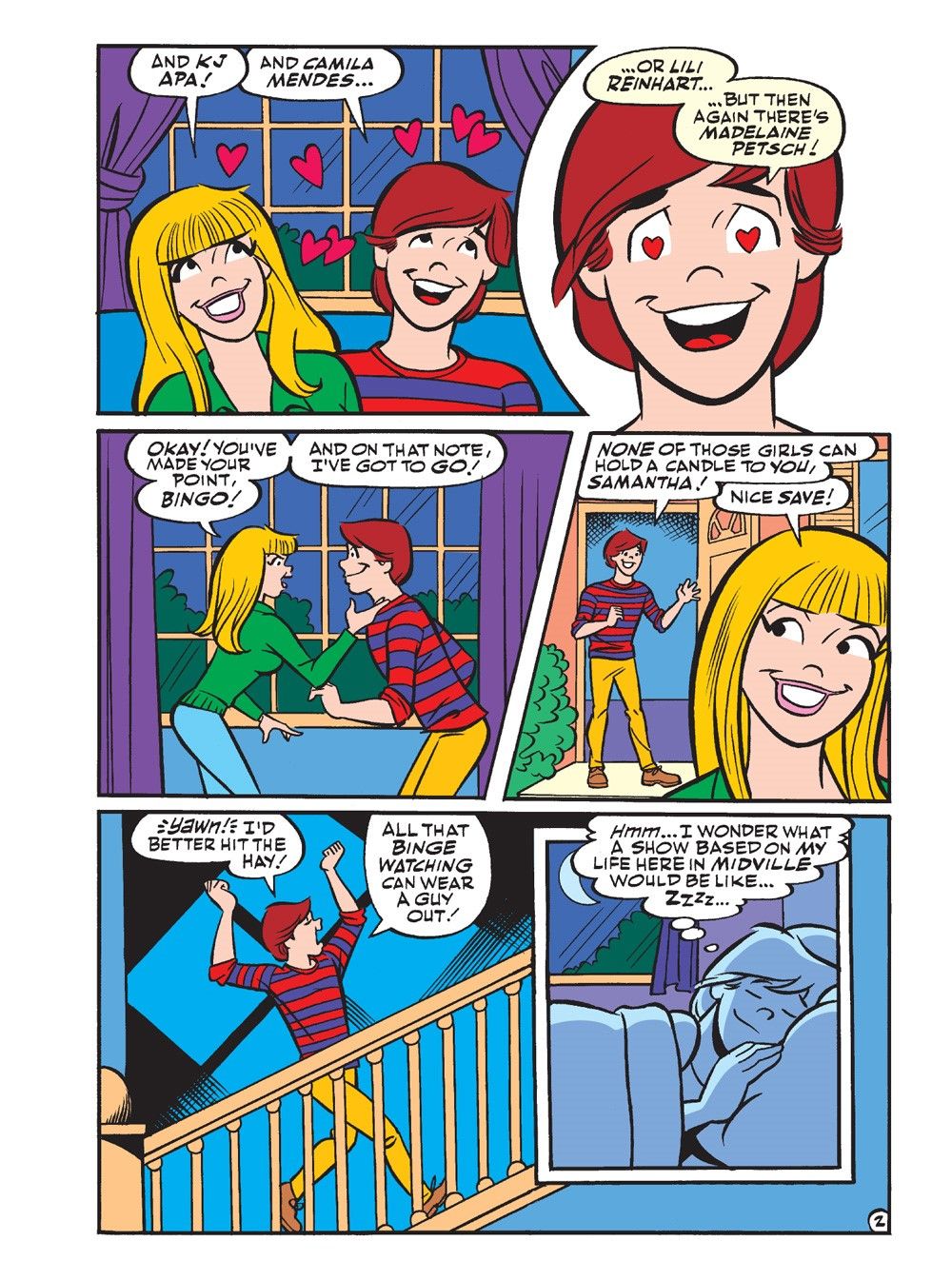 Then, we've got a special holiday surprise for you—another, BRAND NEW STORY! In "Midville," the musical beatnik Bingo Wilkin enjoys the hit TV show Riverdale, which leads him to dream up his own version of the show based on his hometown of Midville. What famous actors will play who? And what gritty storylines will be told? Find out, as the episode unfolds inside of Bingo's head!