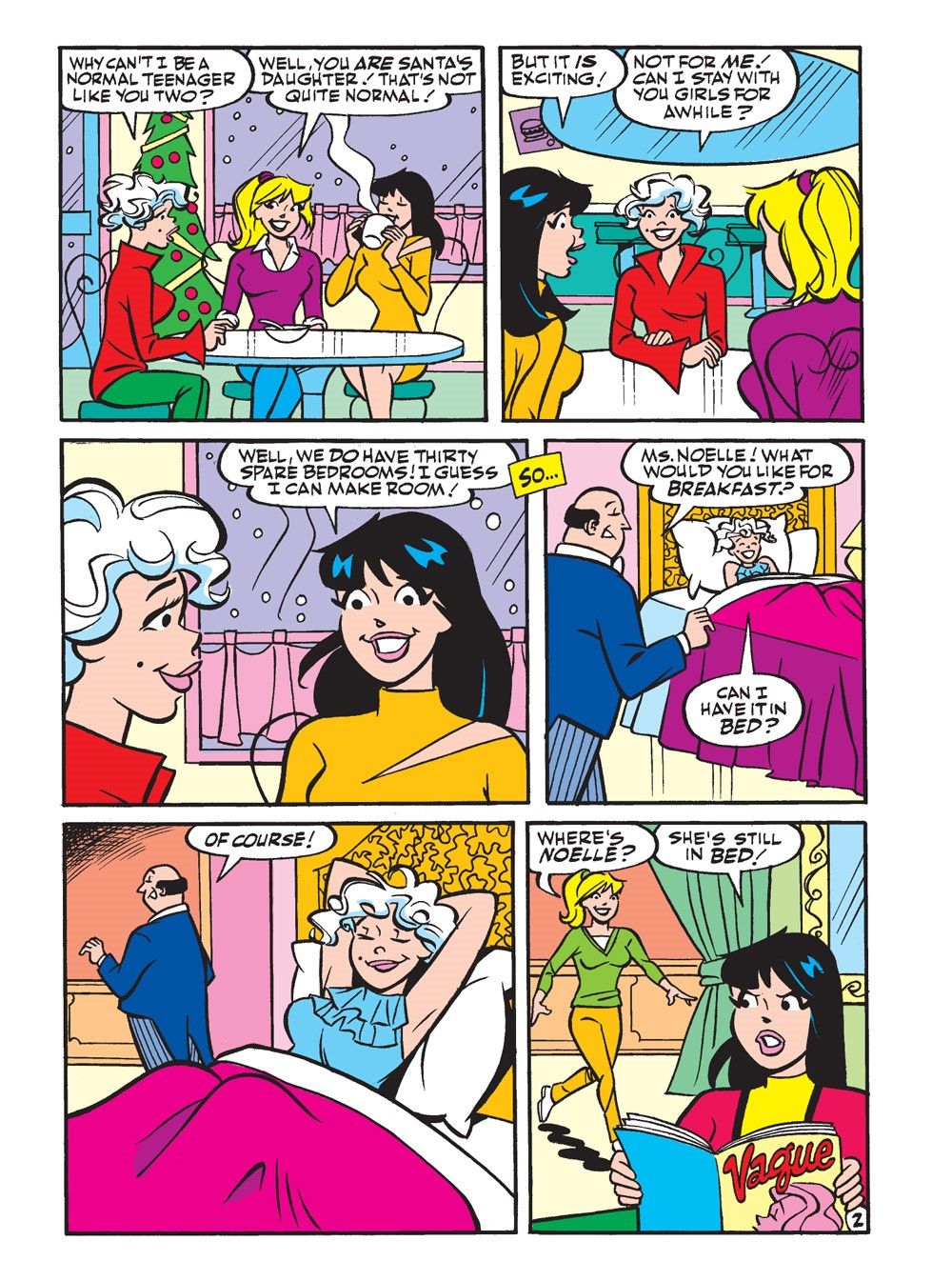 TWO BRAND NEW CLASSIC-STYLE STORIES: "Santa Baby!" Santa's daughter, Noelle, is back in Riverdale on another visit from the North Pole. This time, though, she's leaving Archie alone—because she's set her sights on Reggie! One day she makes the mistake of leaving her laptop at Pop's and Reggie discovers a major piece of intel on her computer… Santa's Naughty or Nice List! Betty and Veronica want to know where they've landed, but Reggie's got dollar signs in his eyes! What happens when that kind of info falls into the hands of Reggie Mantle?
