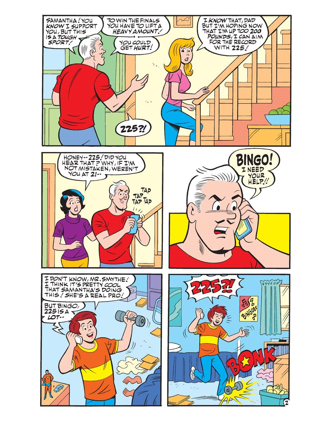 Then we have another bonus tale from the world of That Wilkin Boy! In "An UpLIFTing Story," Sampson Smythe couldn't be prouder of his only daughter when he learns that she's entering the annual Midville powerlifting competition—that is, of course, until he learns Samantha's broken his powerlifting records. He tries to deter her from entering the contest, but Samantha has her eyes set on the prize. Sampson recruits Bingo to dissuade her but he disagrees with her father—until he, too, learns that she can bench more than him! Will Samantha heed their advice and retreat, or go for the gold?