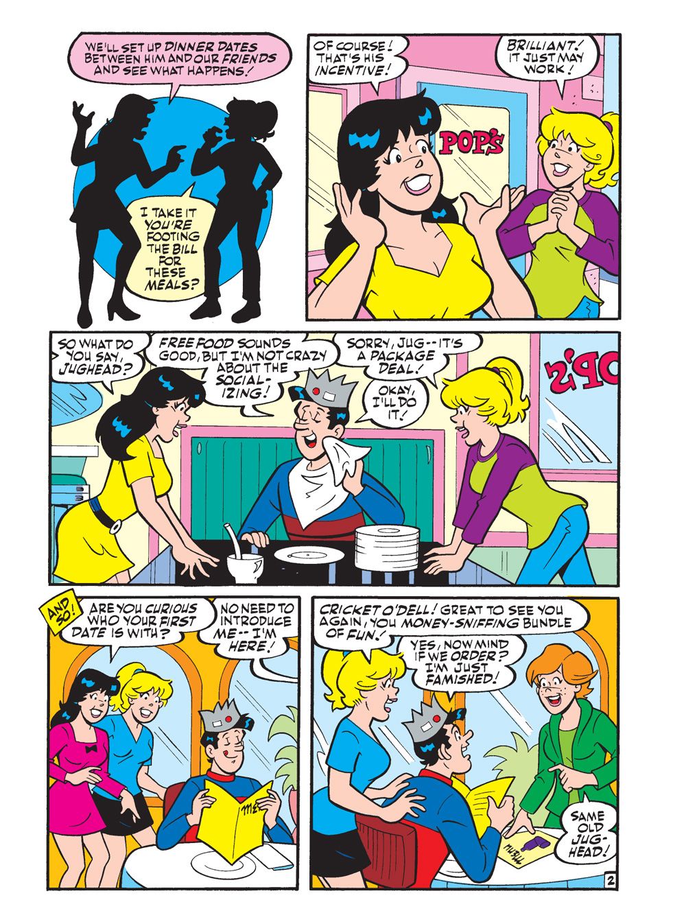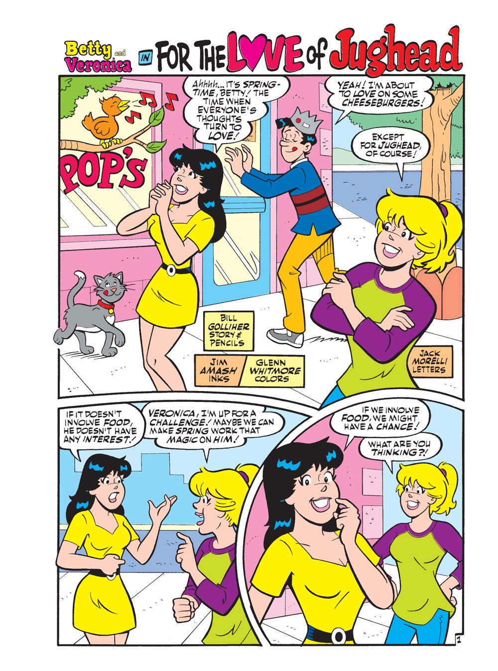 TWO BRAND NEW STORIES: First, "For the Love of Jughead!" It's springtime and love is in the air... for everyone except Jughead, of course. This inspires Betty and Veronica to come up with an idea—to combine Jughead's love of food with the world of dating. They plot to send him on a series of dinner dates with a few of their female friends. Will the love bug finally bite Jughead—or have Betty and Veronica bit off more than they can chew?