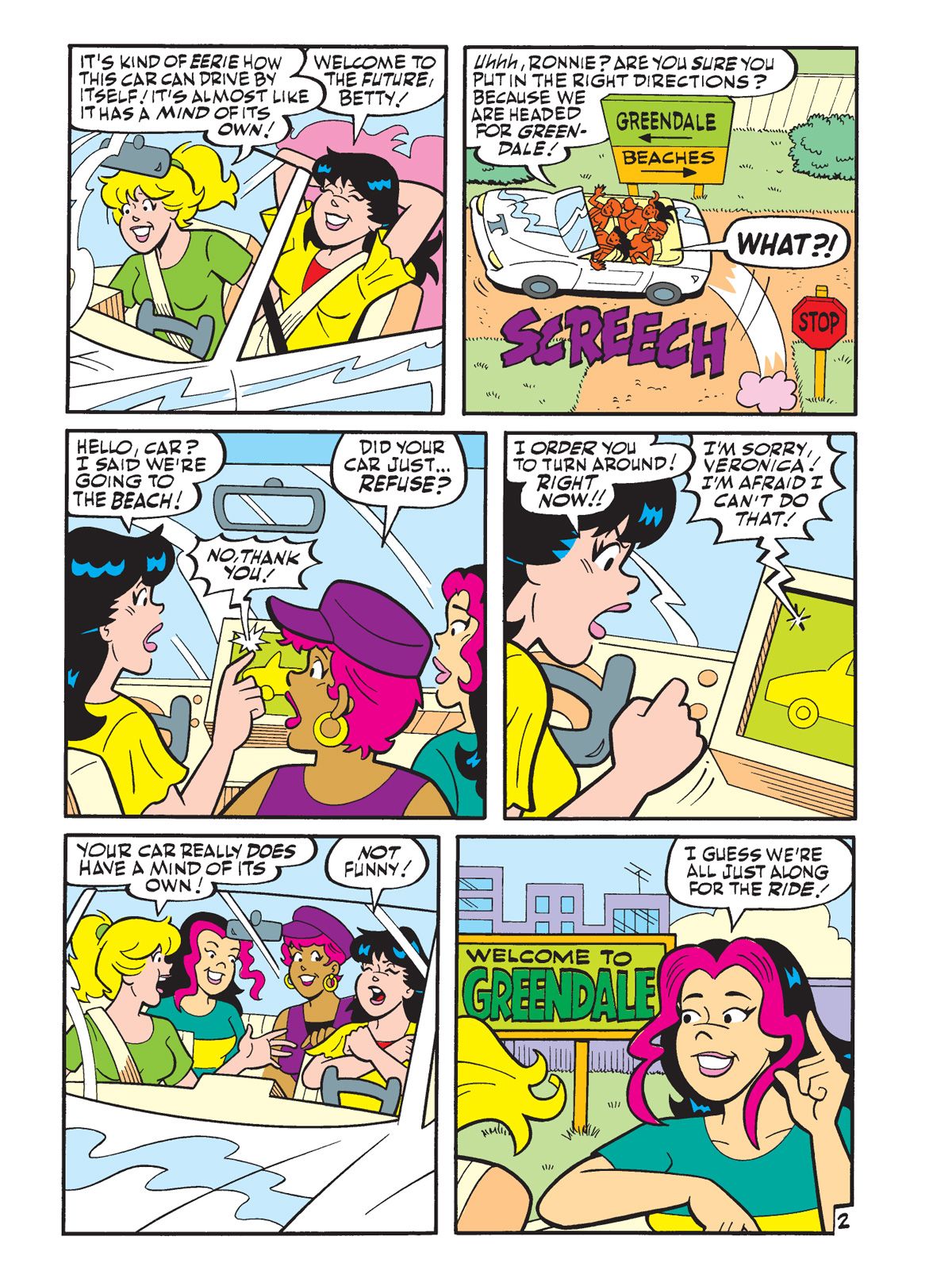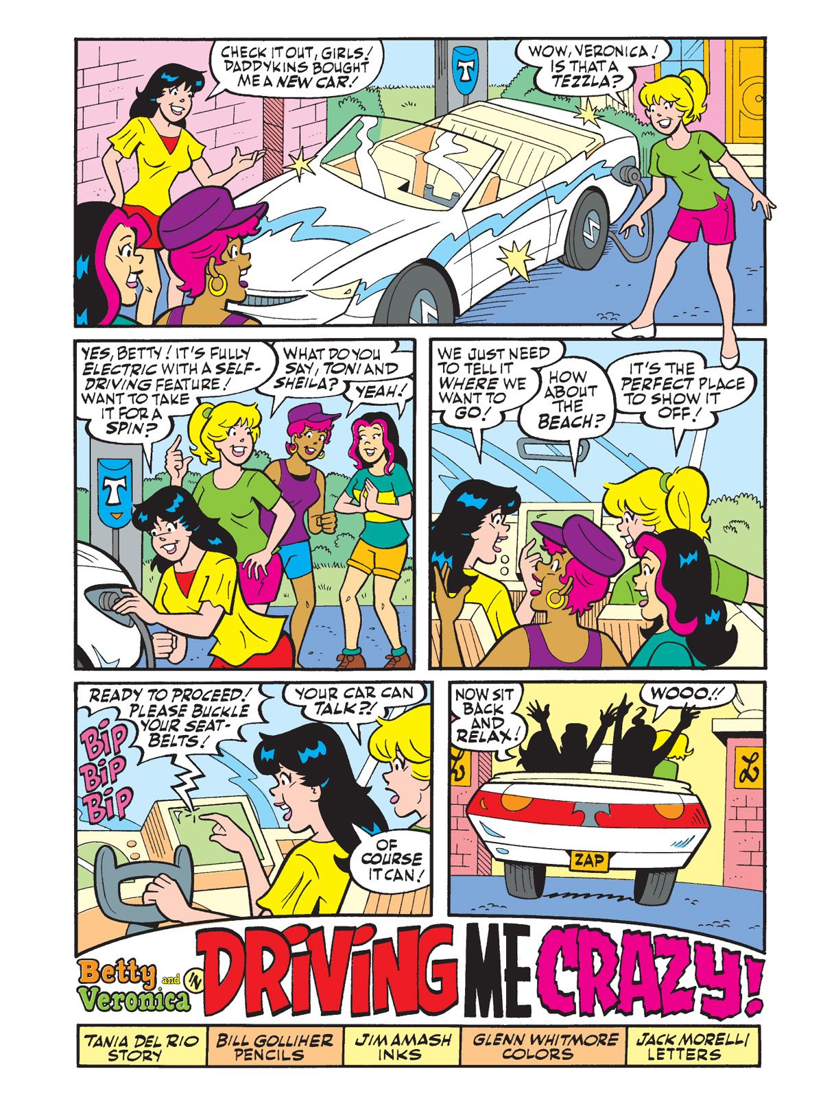 BRAND NEW STORY: "Driving Me Crazy!" Veronica has been gifted a fancy self-driving car by her father and is excited to show it off to Betty. But as soon as she activates the self-driving feature, the car has a mind of its own, taking them on a wacky tour of Riverdale, stopping at unusual stops along the way! Where will this vehicle with a mind of its own take her?