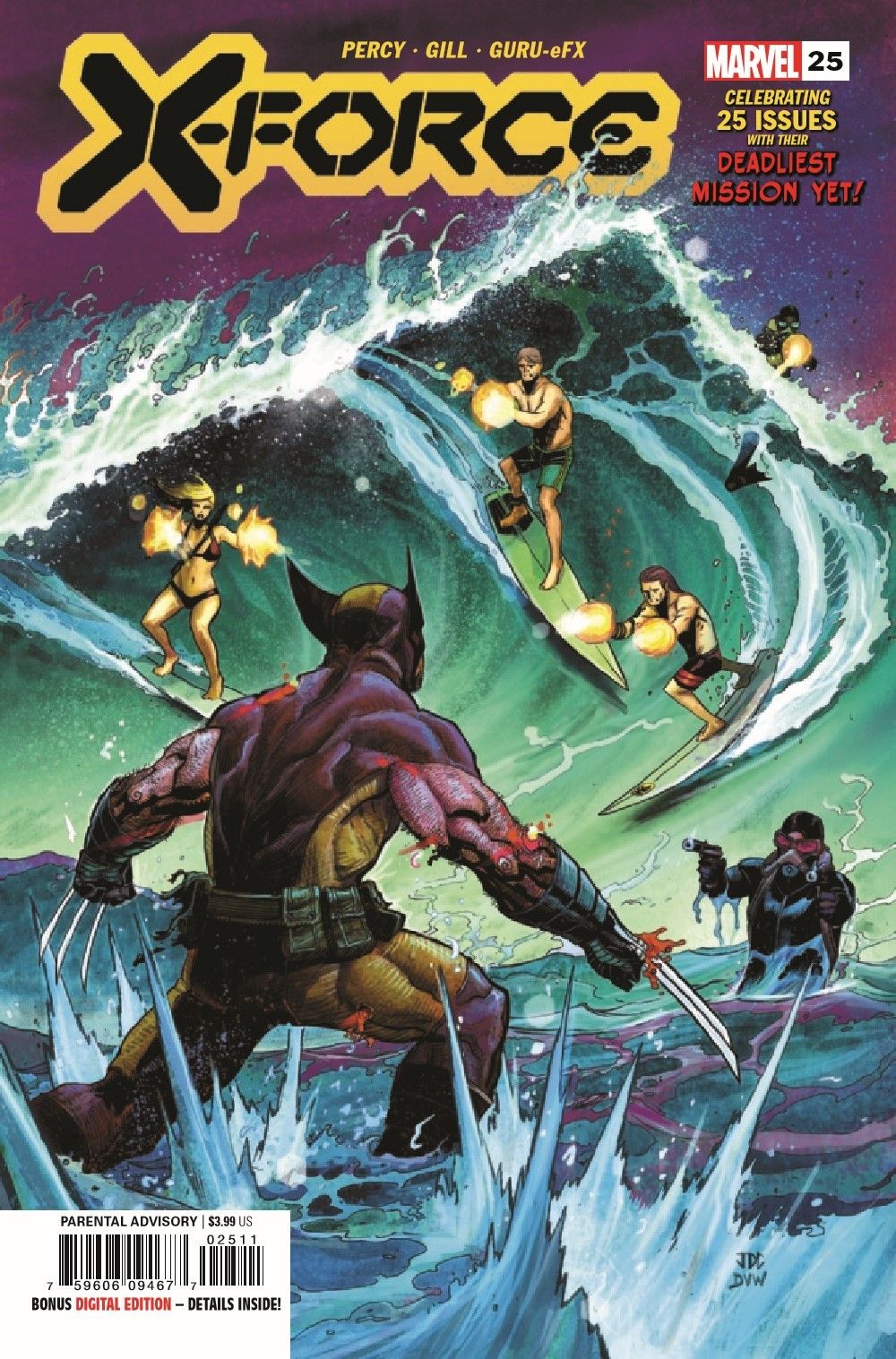 A DEADLY TURN OF THE TIDE TO MARK 25 ISSUES OF X-FORCE! The island paradise of Krakoa has no shortage of beautiful vistas, but WOLVERINE'S tastes run toward the coves with the deadliest waves in the world! It will take more than a healing factor to survive this thresher as a previously unknown threat to mutantkind splashes down! Plus: A sea change for KID OMEGA and PHOEBE CUCKOO!