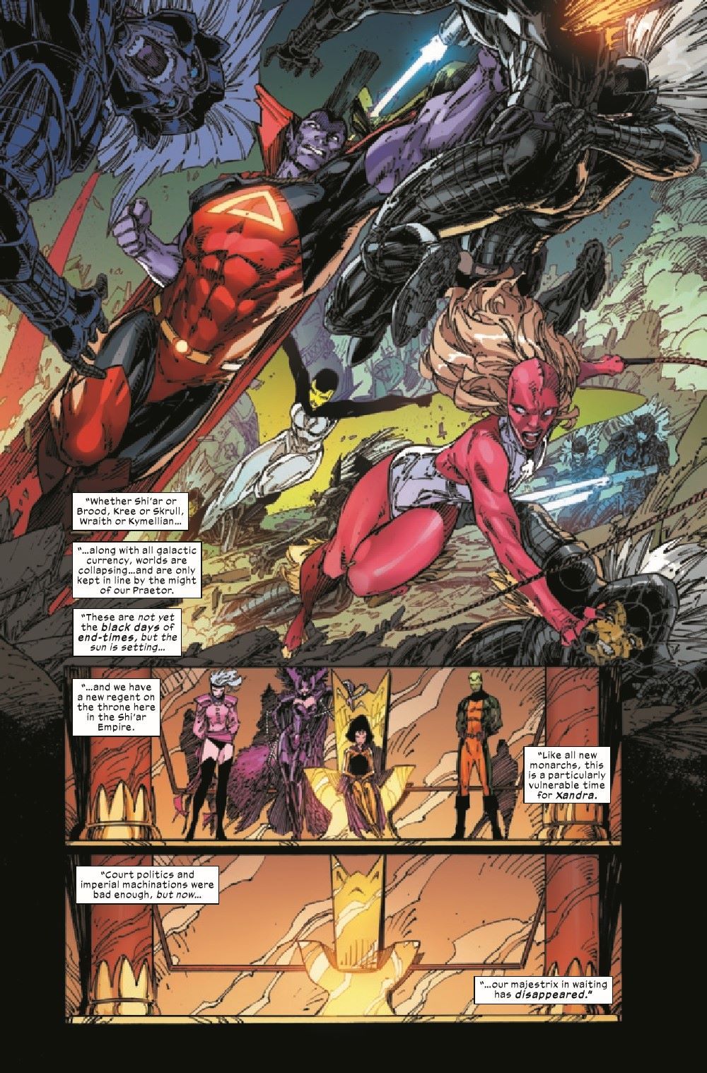STORM THE EMPIRE! When the Shi'ar Empire asks the X-Men for help, Cyclops, Storm and Marvel Girl answer the call.