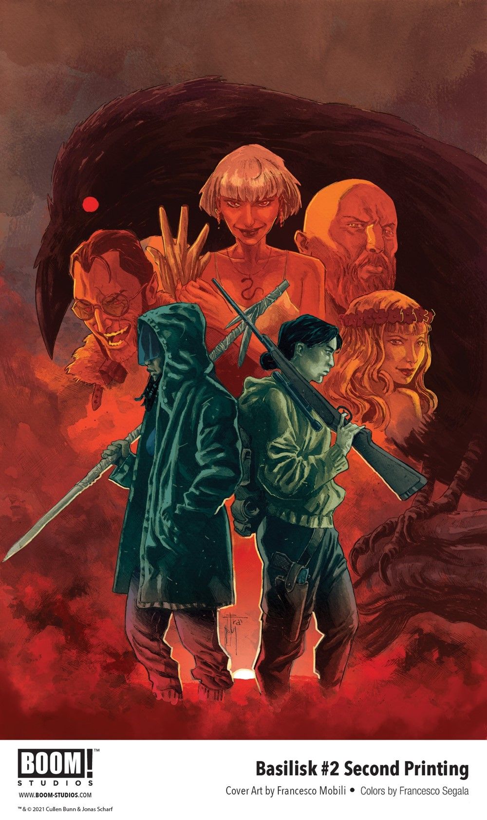In response to the overwhelming support from retailers and fans, BOOM! Studios has announced BASILISK #2 SECOND PRINTING, featuring brand new cover art by Francesco Mobili (Daredevil) and Francesco Segala, available in stores August 4, 2021.
