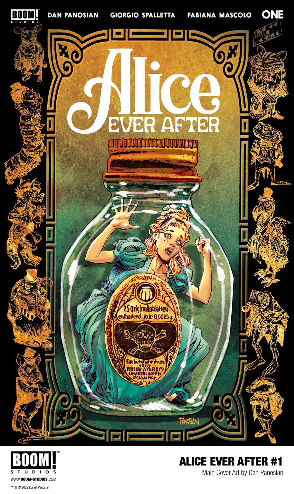 ALICE EVER AFTER #1 features main cover art by Dan Panosian, as well as variant cover art by superstar illustrators Jenny Frison (Something is Killing the Children), and J. Scott Campbell (The Amazing Spider-Man).