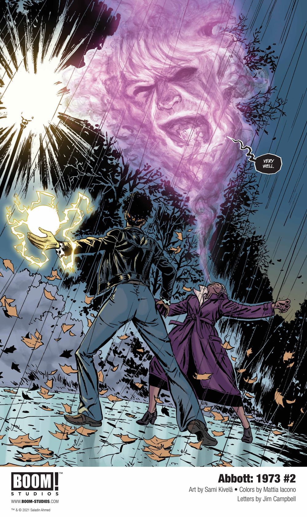 Media Release -- BOOM! Studios today revealed a first look at ABBOTT: 1973 #2, the latest issue of the new series from Miles Morales: Spider-Man mastermind & Eisner Award-winning writer Saladin Ahmed and acclaimed artist Sami Kivelä (Machine Gun Wizards), with colorist Mattia Iacono and letterer Jim Campbell. This new five-issue series returns to the Hugo Award-nominated world of Abbott, as the eponymous unstoppable reporter tackles a new corruption taking over Detroit in 1973 and the supernatural threat behind it.
