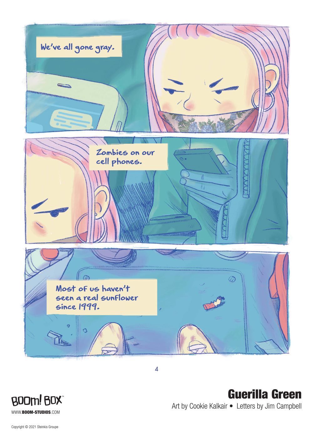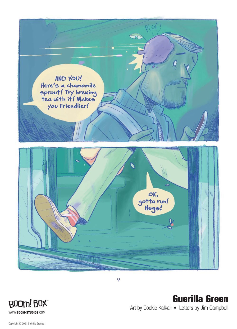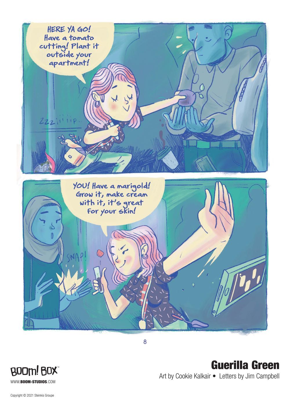 Media Release -- BOOM! Studios today revealed a first look of GUERILLA GREEN, the new original graphic novel from the acclaimed team of Cookie Kalkair & Ophélie Damblé about a thirty-year-old city-dweller who's joined the guerilla gardening movement, which has been fighting for decades to bring more green back into cities that increasingly resemble concrete jungles, available in April 2021.